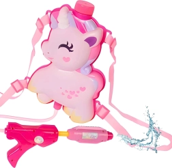 Izbaudi vasaru pilnībā ar mīlīgu komplektu – rozā vienradža formas mugursomu un rokas ūdens pistoli ar pumpi. Pateicoties regulējamām plecu lencēm, mugursoma ērti pieguļ mugurai, aizverams uzpildes atvērums atvieglo ūdens ieliešanu, bet pumpēšanas mehānisms nodrošina precīzu ūdens strūklas tēmēšanu. Lieliska āra izklaide bērniem no 3 gadu vecuma.
