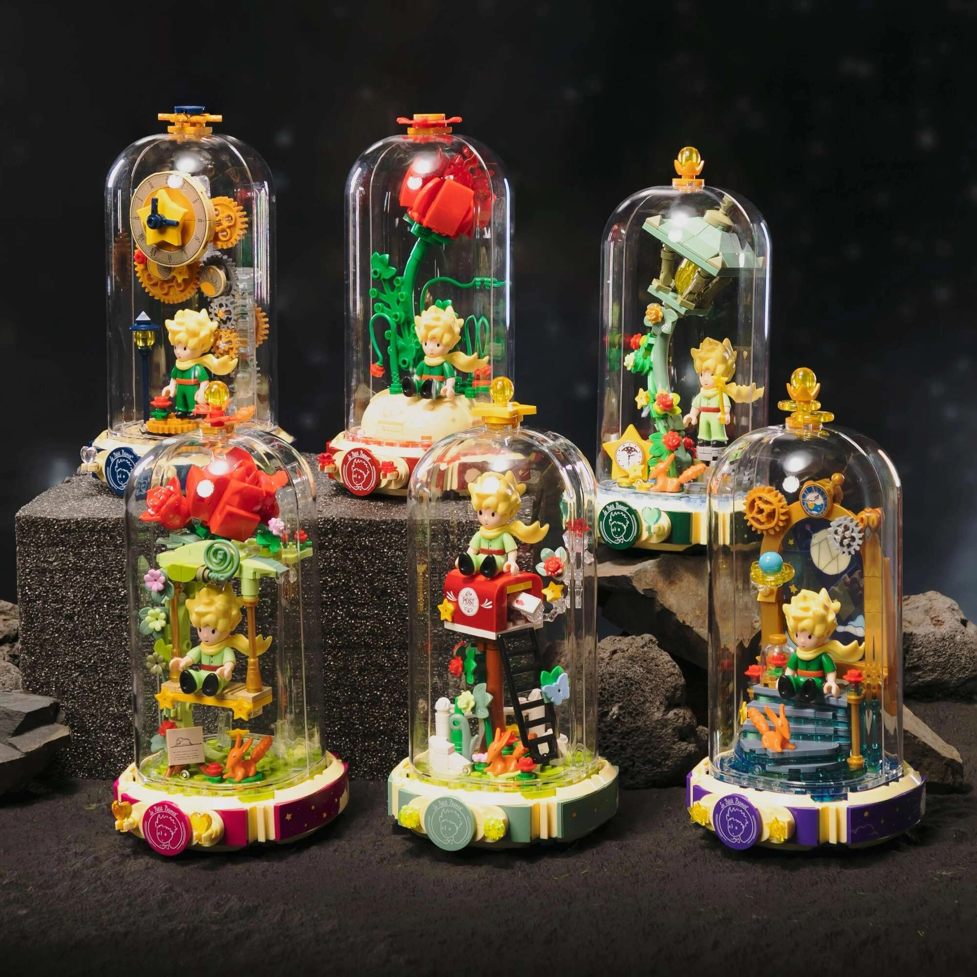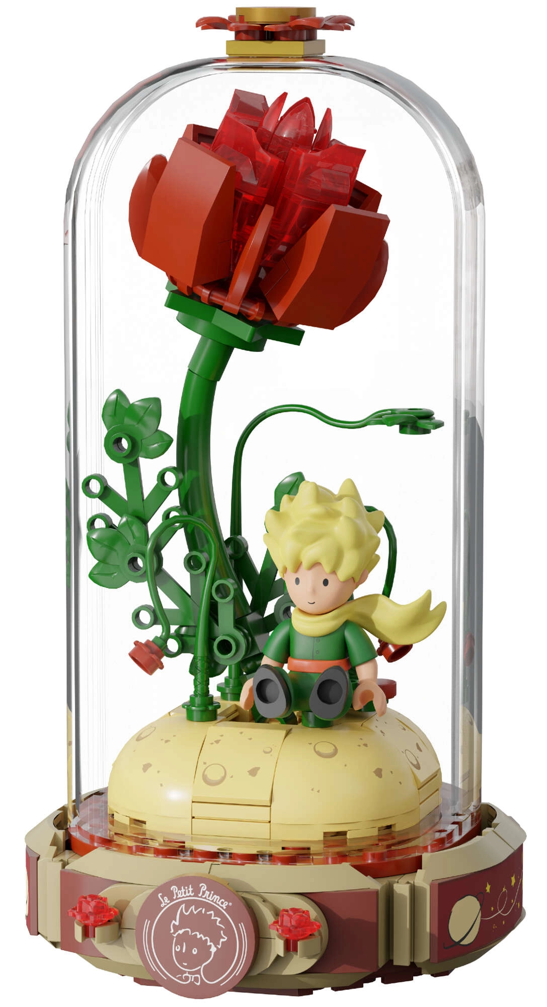 Uzbūvējiet simbolisko sarkano rozi uz pamatnes atvērtas grāmatas formā ar uzrakstu “Le Petit Prince”. Blakus stāv Mazais princis un lapsa raksturīgā pozā. Pārdomātas kāta, lapu un ziedu detaļas piešķir modelim harmoniju un eleganci – lieliski piemērots gan izstādei, gan radošai izklaidei.