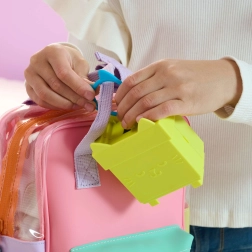 - Klipsis/karabīne piestiprināšanai pie mugursomas, atverama mini istabiņa
