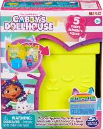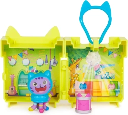 Pārnēsājams mini bokss no pasakas Gabby’s Dollhouse ar varoni DJ Catnip piedāvā bērniem daudz jautrības jebkur. Dzeltenais futrālis ar ausīm kalpo gan kā klipsis mugursomai, gan kā mini istabiņa spēlēm, un to var savienot ar citiem komplektiem, lai uzbūvētu mazo GABBY namiņu. Iepakojumā kopā ir 5 detaļas, ideāli bērniem no 3 gadu vecuma.