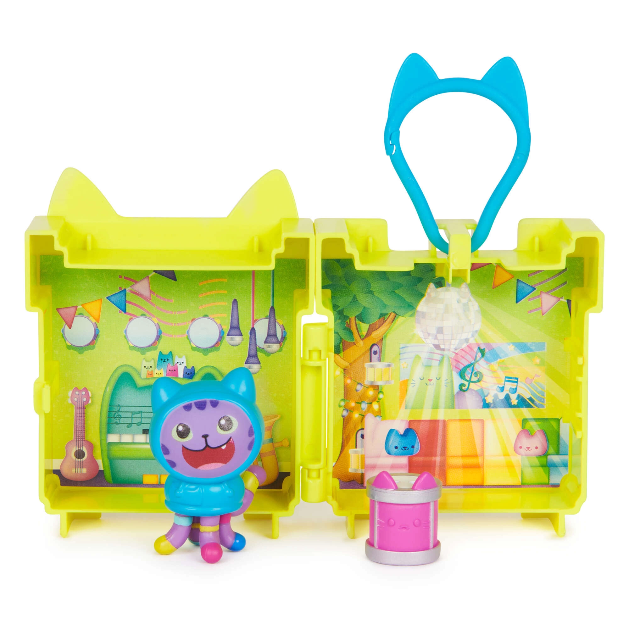 Atklājiet mīlīgo minibokssu ar DJ Catnip tēmu no iemīļotā seriāla Gabby’s Dollhouse. Dzeltenais kaķīša futrālis atveras par mūzikas skatuvi, kur bērni var attīstīt fantāziju, stāstīt stāstus un spēlēties ar foršiem aksesuāriem. Pateicoties praktiskajai karabīnei, komplektu ir viegli piestiprināt pie mugursomas vai somas, lai tas vienmēr būtu pa rokai.