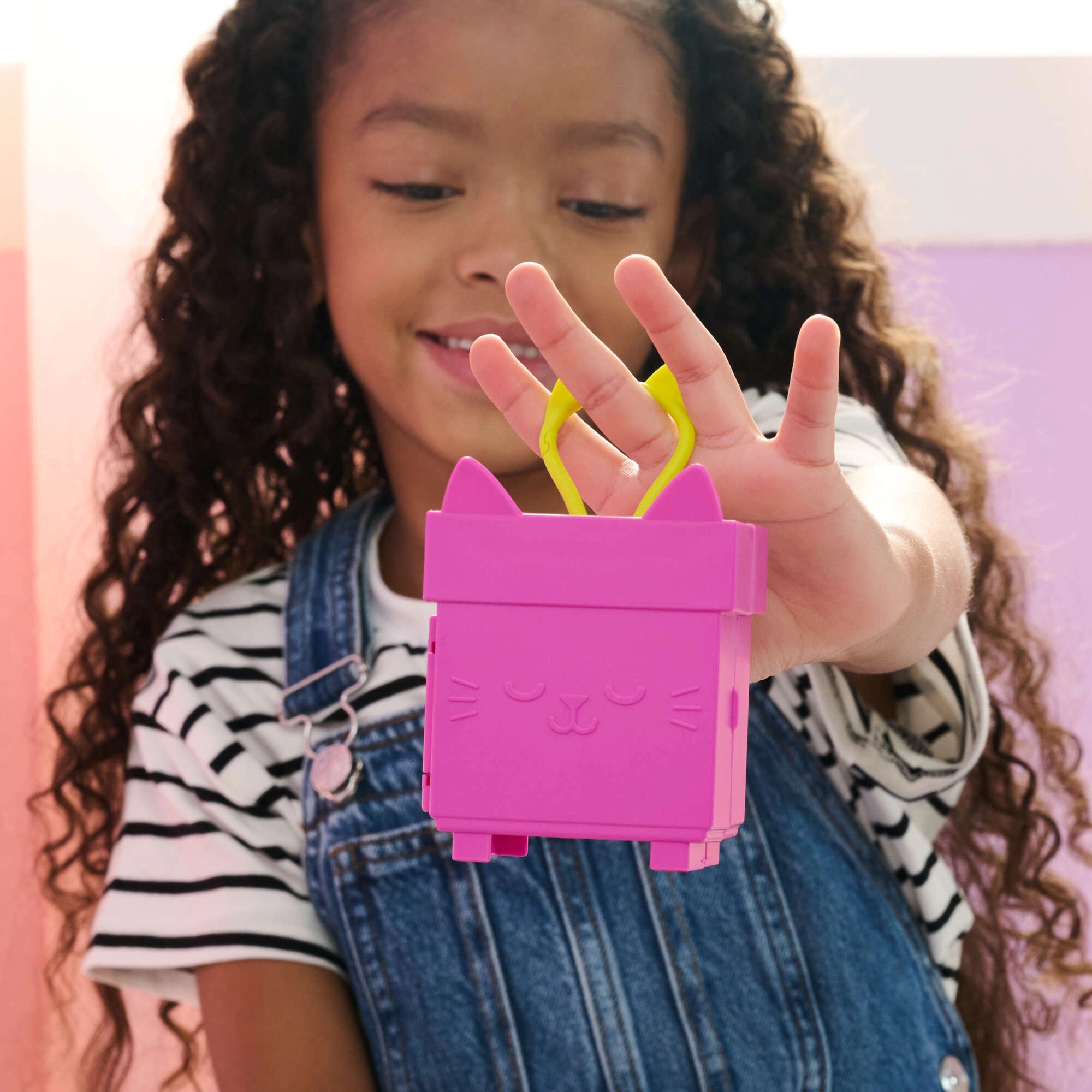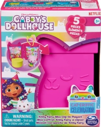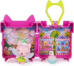 Šī pārnēsājamā minikaste kaķīša somiņas formā iepriecinās visus Gabby’s Dollhouse seriāla fanus. Iekšpusē atradīsiet krāsainu karnevāla/pasaku skatuves fonu, mīlīgu Kitty Fairy figūriņu un tematiskus piederumus. Pateicoties klipsim un rokturim, bērni var ņemt savu mini spēļu istabu līdzi jebkur – piestiprināt pie mugursomas vai nest rokā.