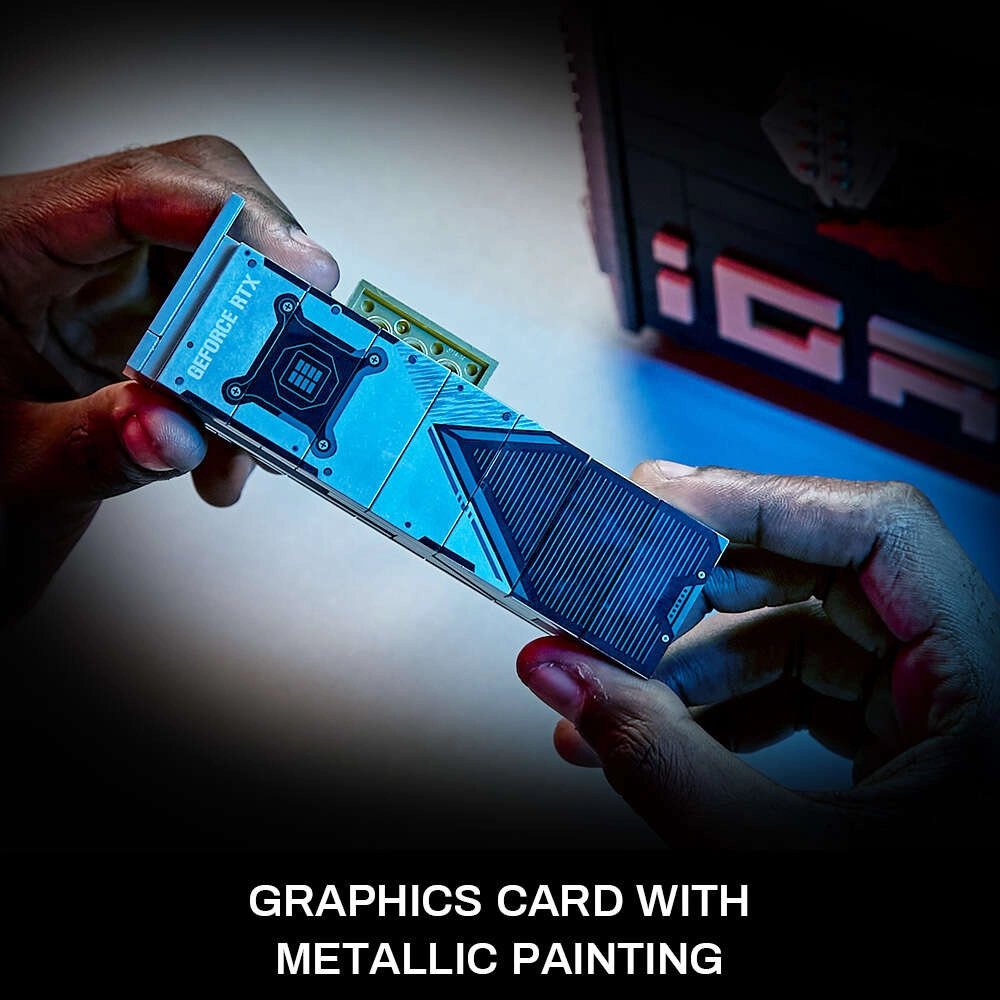 Atklājiet oriģinālu konstruktoru, kas uzticami atdarina modernu spēļu datoru. Katrs modulis – sākot no grafiskās kartes, barošanas bloka un SSD turētāja līdz mātesplatei un DDR atmiņām – tiek salikts atsevišķi, lai jūs izbaudītu reālistisku datora “upgrade” sajūtu. Precīzs pad-drukājums uz detaļām nodrošina ilgstoši skaistu izskatu bez nepieciešamības līmēt uzlīmes.