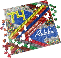 Izbaudiet gan atslodzi, gan izaicinājumu ar oficiālo puzli, kas veltīta RUBIK’S kubika 50. gadadienai. Pēc salikšanas iegūsiet krāsainu mozaīku ar kubu sienu, izteiksmīgo skaitli “74” un saukli “Eat, Sleep, Game, Repeat!”. Pateicoties kontrastējošām krāsām un izteiksmīgai grafikai, gatavais attēls lieliski izskatās rāmī pie sienas.