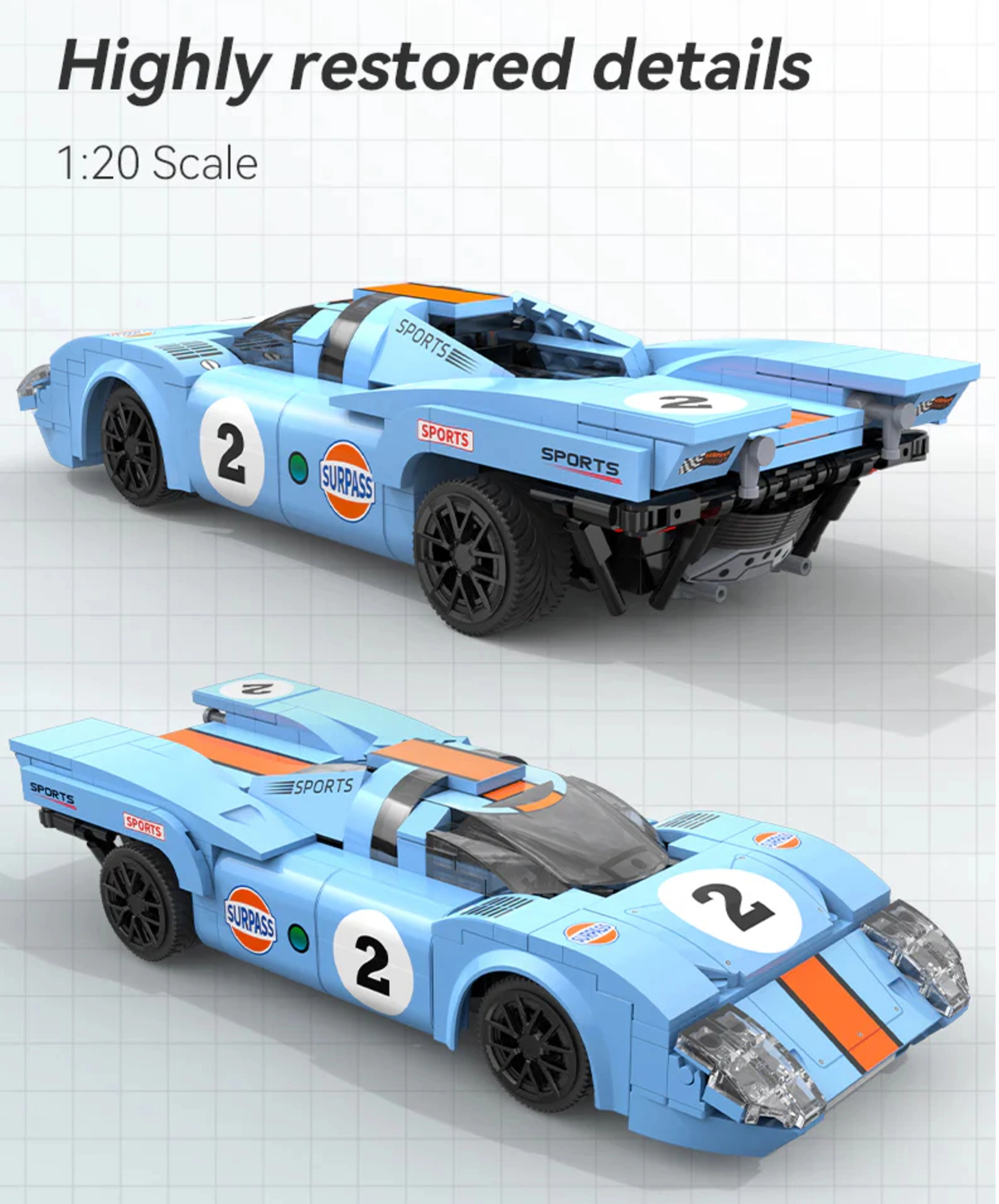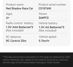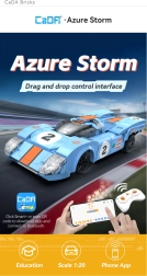 Konstruktoru komplekts CaDA AZURE STORM apvieno radošu būvēšanu ar ātru RC braukšanu. Pēc salikšanas iegūsiet detalizētu sacīkšu auto ar aerodinamisku formu, caurspīdīgu kabīni un sportiskām uzlikām, gatavu dinamiskiem braucieniem mājās un ārā. Vadība ir intuitīva un stabila, pateicoties 2,4 GHz un Bluetooth tehnoloģijai.
