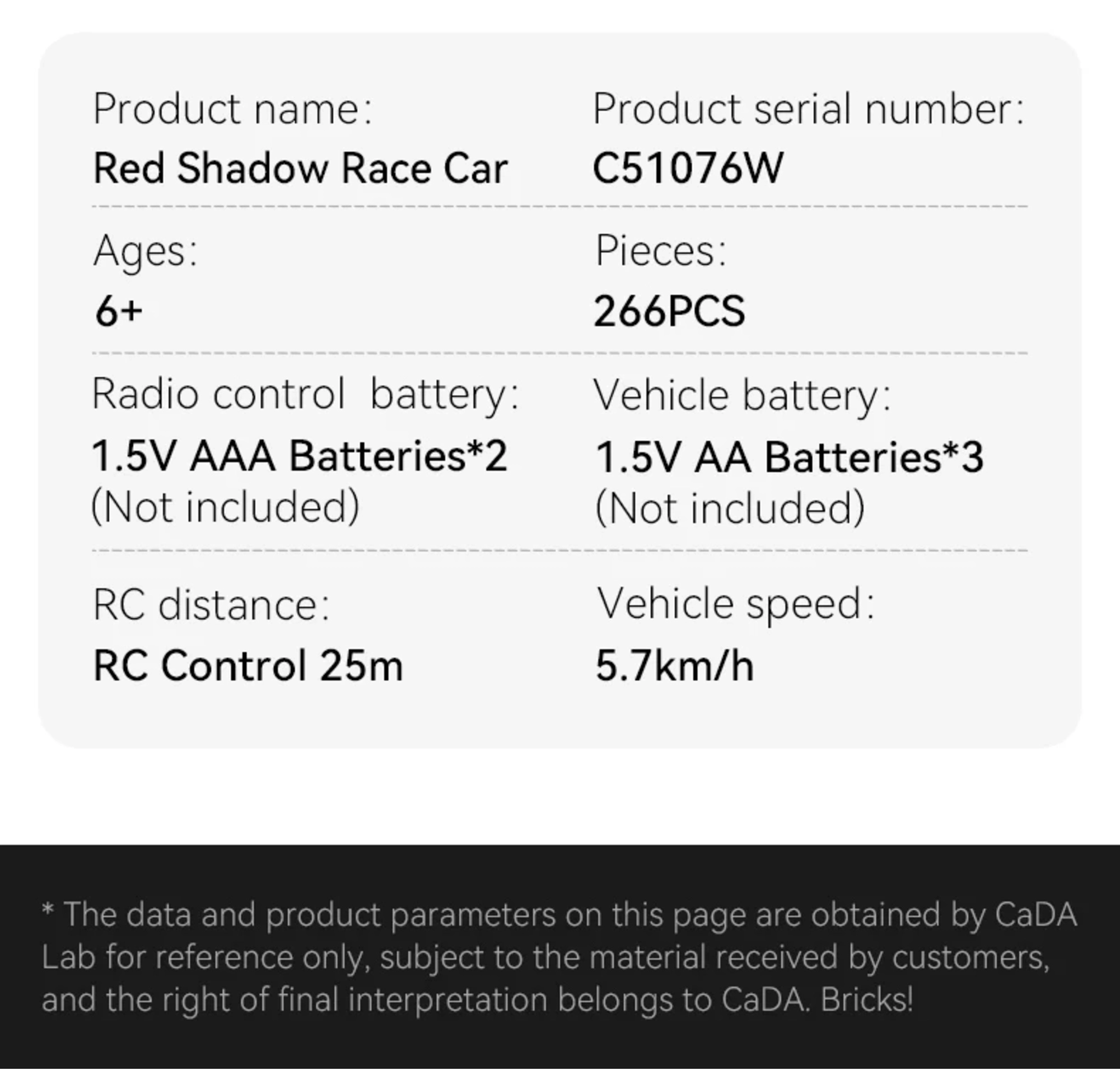 Izturīga konstrukcija, detalizēts izskats un saderība ar citiem CaDA komplektiem. Attīsta sīko motoriku un radošumu.