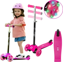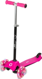 Viegls un stabils bērnu skrejritenis EVO Mini Cruiser ar trim riteņiem vieglākai līdzsvara apguvei. Piedāvā spīdošus LED riteņus, slīpuma (balansa) stūrēšanu, augstumā regulējamu stūri un aizmugurējo kāju bremzi. Rozā krāsa iepriecinās mazos braucējus, savukārt klusa gaitа un plats kāpslis gādā par komfortu un drošību.