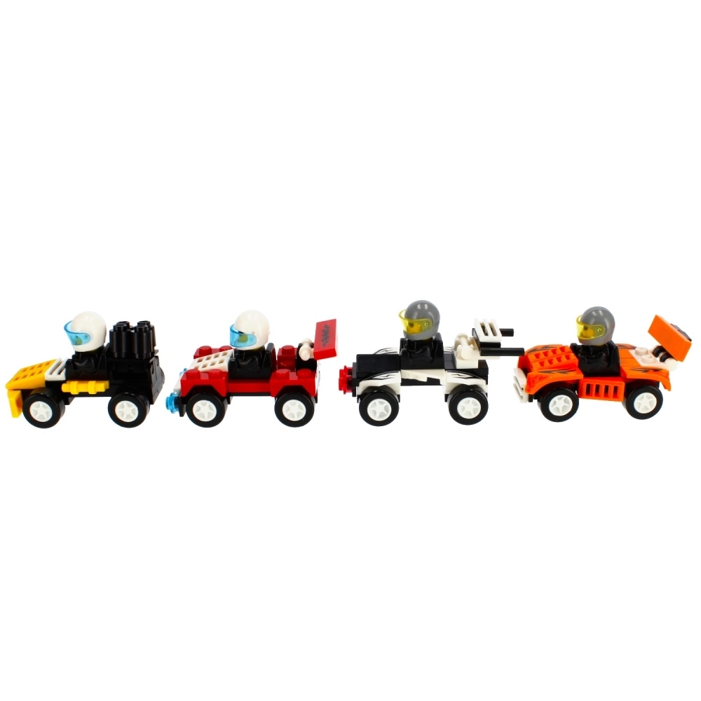Pieejami 4 pievilcīgi dizaini (dažādas krāsas un detaļas), kas lieliski izskatās gan uz plaukta, gan mājas sacīkšu trasē. Autiņi ir saderīgi ar parastajiem līdzīga tipa konstruktoriem, tāpēc aprīkojumu var viegli paplašināt vai izveidot savu komandu.