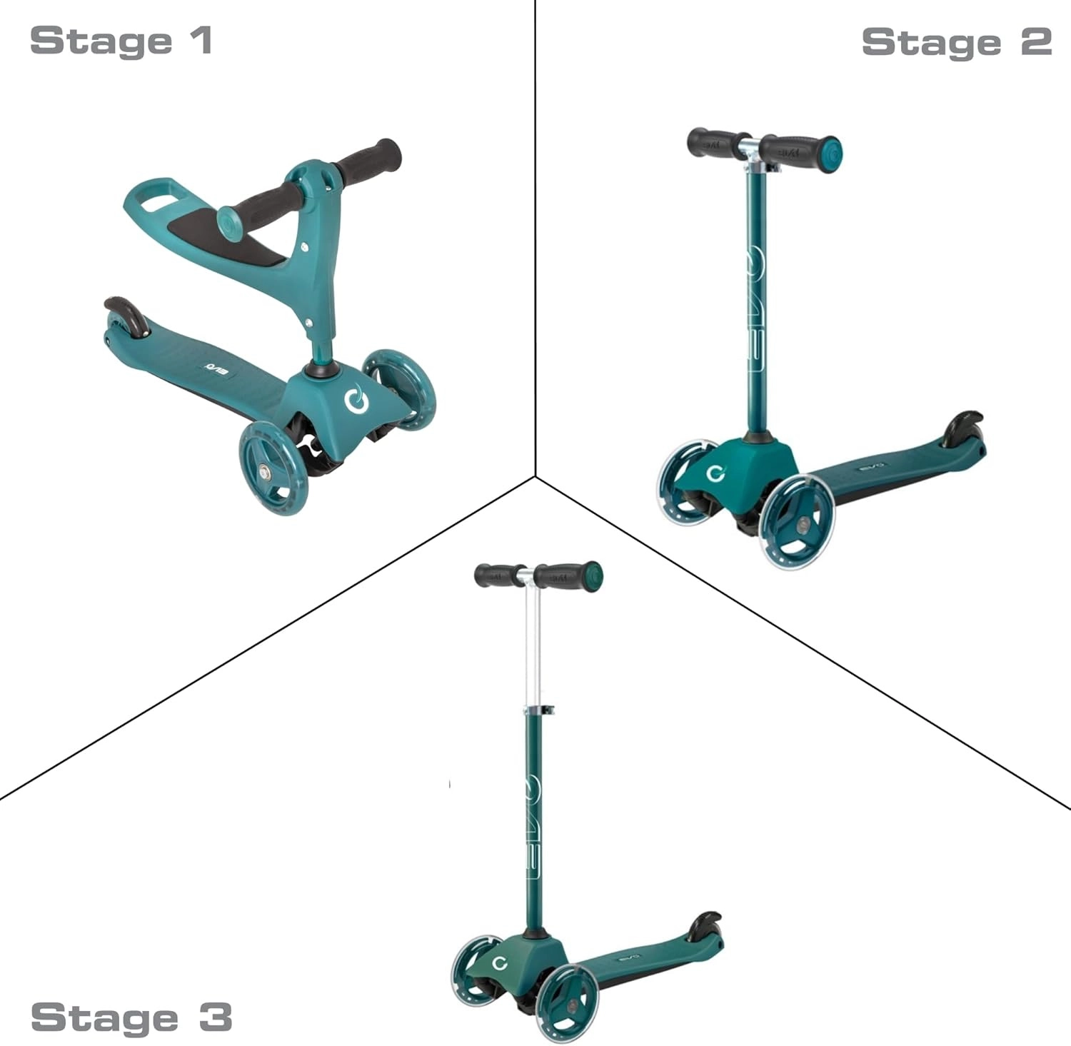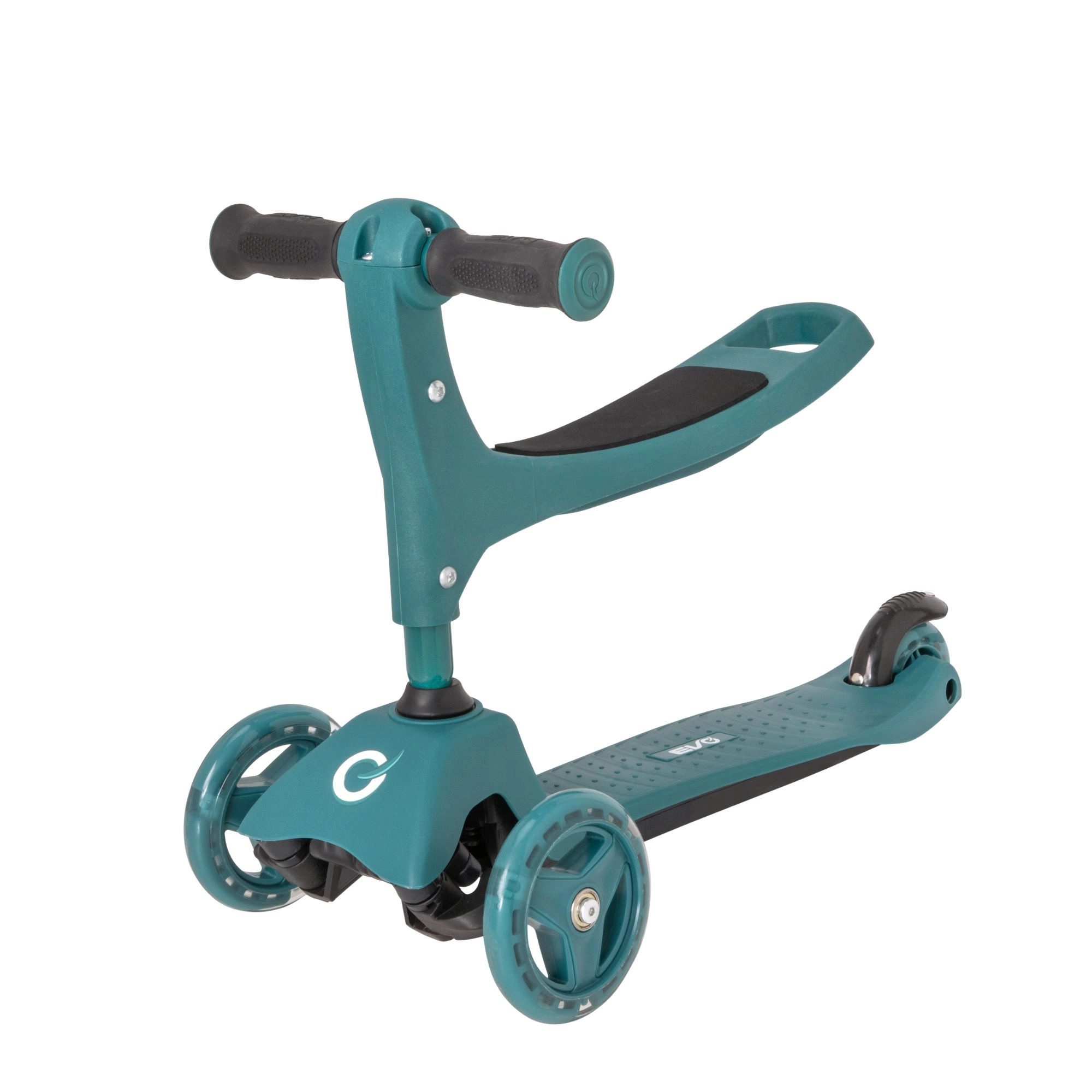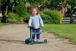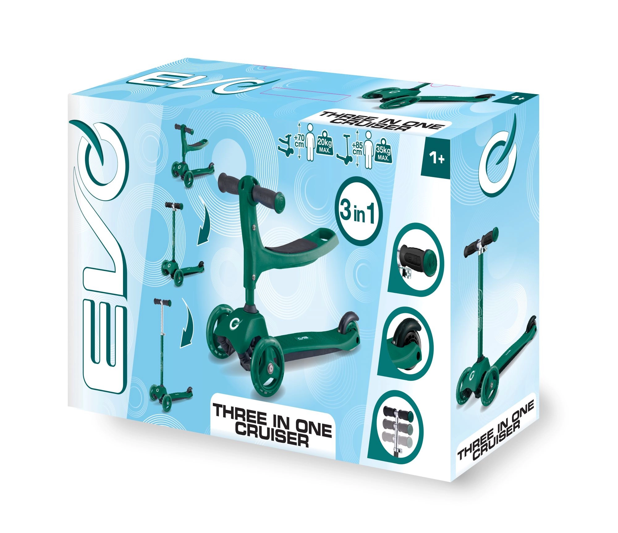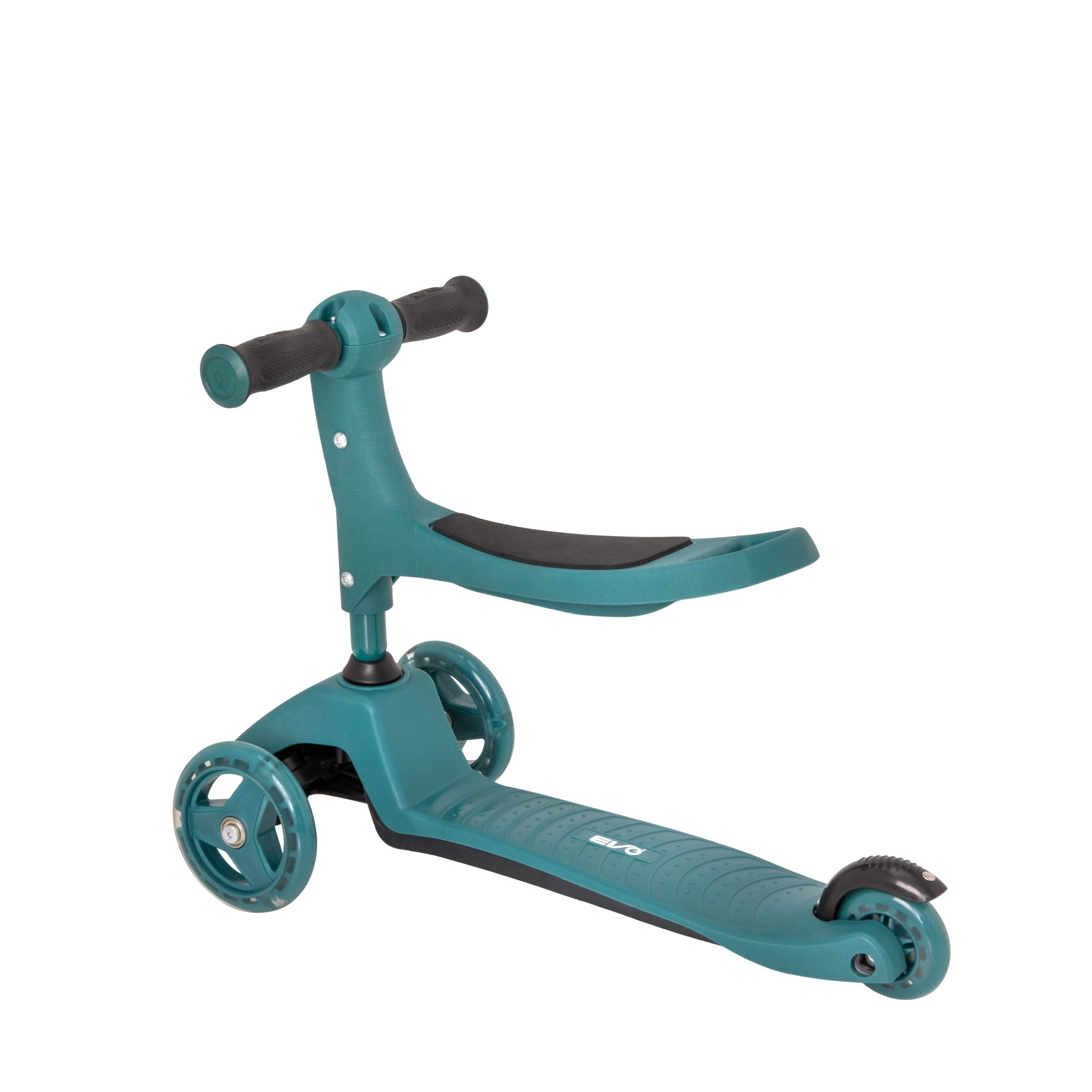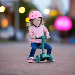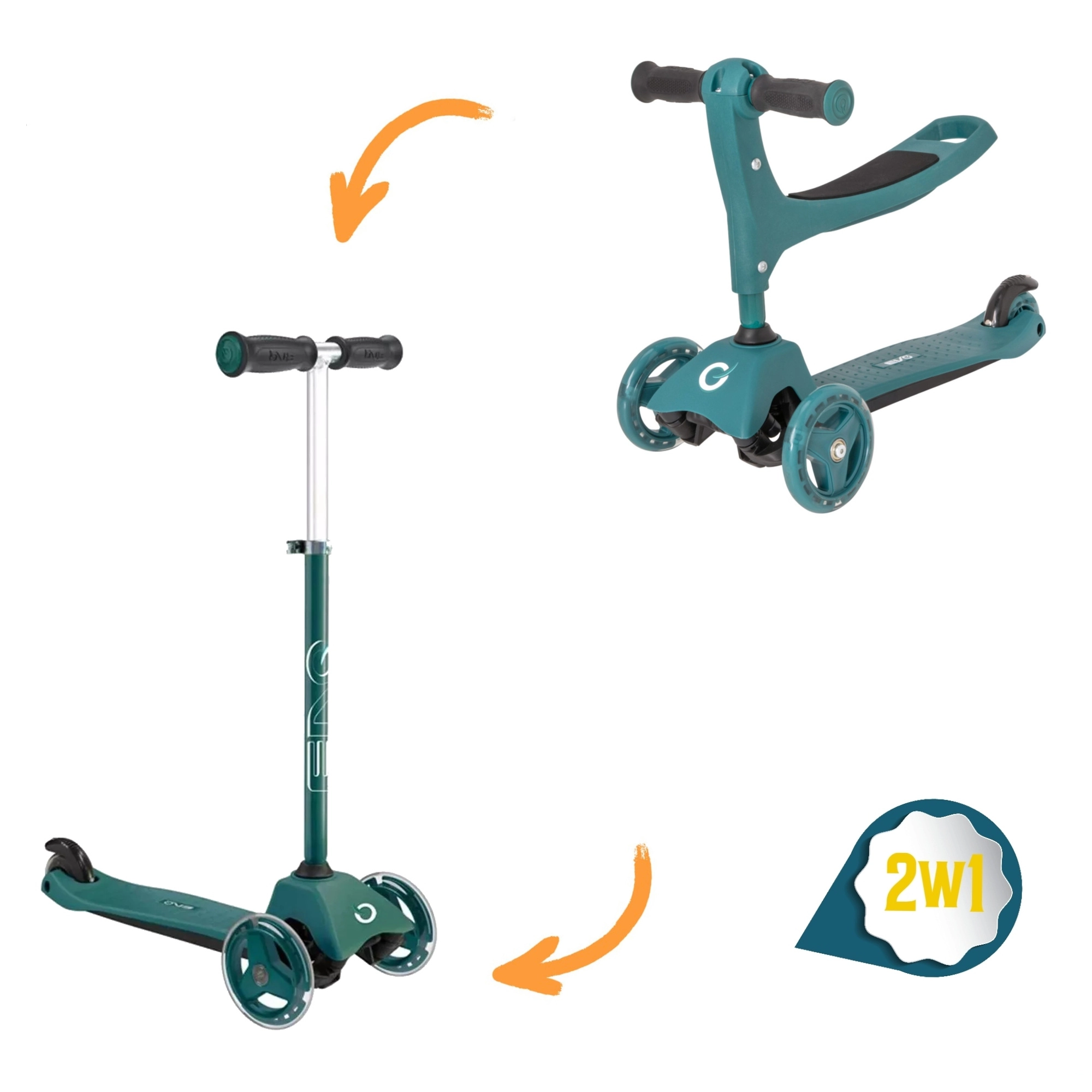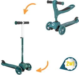 Sniedziet bērniem stabilu un aizraujošu braukšanu ar EVO 2-in-1 skrejriteni – apvieno braucamrīku ar sēdekli un skrejriteni vienā. Pateicoties trim riteņiem, platai platformai un regulējamam stūres augstumam, tas veicina līdzsvaru un koordināciju jau no 1 gada vecuma. Divi priekšējie riteņi, klusie ABEC-5 gultņi un kājbremze uz aizmugurējā spārna nodrošina drošu un plūdenu braucienu.