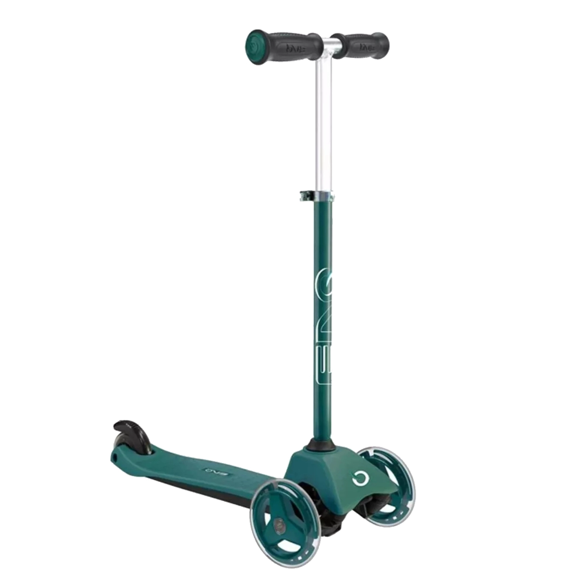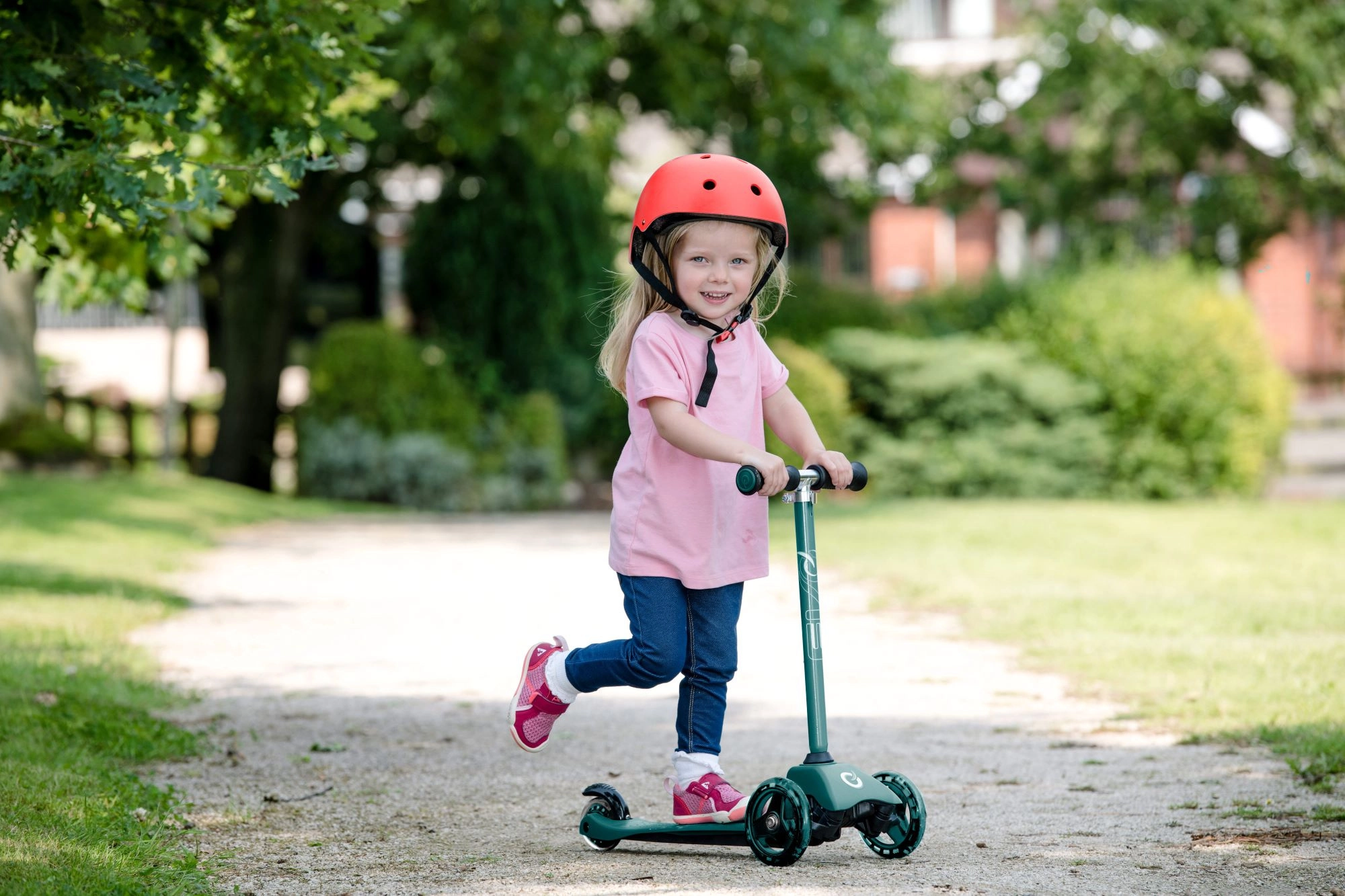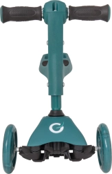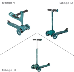 Divi lielāki priekšējie riteņi palīdz turēt virzienu un vairo pārliecību atspēriena laikā. Aizmugurējais spārns kalpo kā uzticama kājbremze drošai apstādināšanai.