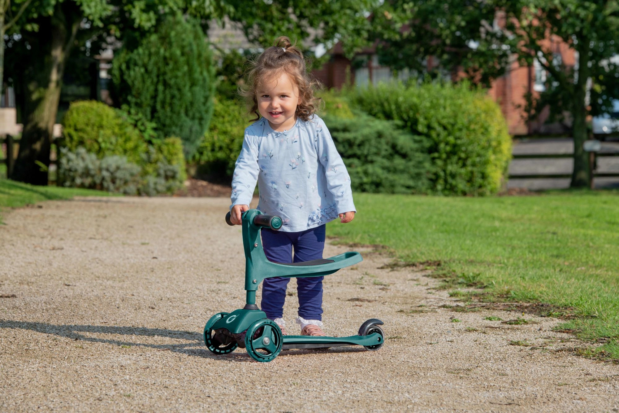 Šis gudrais 2-in-1 trīsriteņu skrejritenis dažu mirkļu laikā pārvēršas no braucamrīka ar sēdekli par klasisku skrejriteni. Pateicoties regulējamai stūrei (apm. 40 cm braucamrīka režīmā un 62–72 cm skrejriteņa režīmā), tas aug līdzi bērnam un sniedz pārliecību gan pirmajos braucienos, gan vēlāk, kad atspērieni kļūst straujāki.