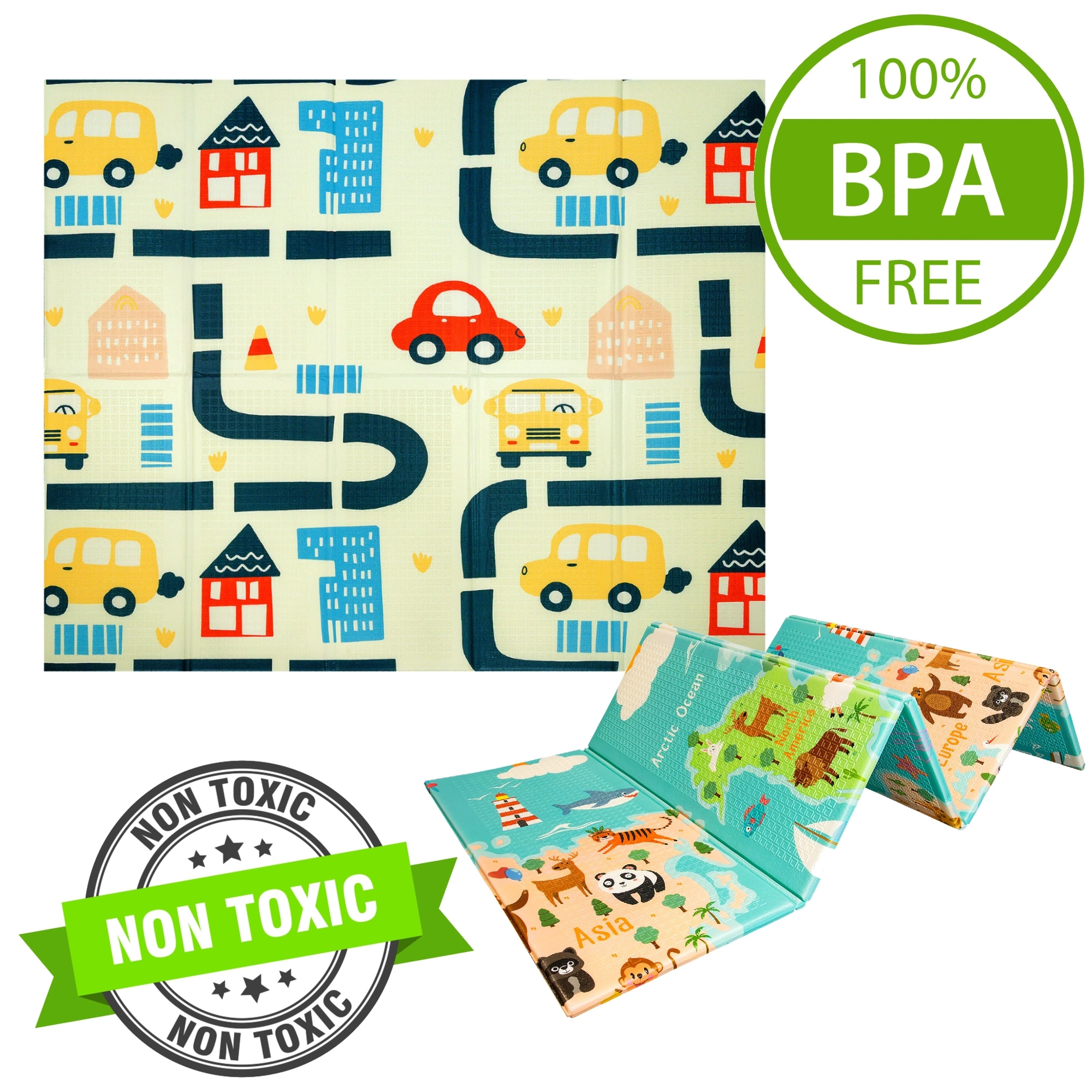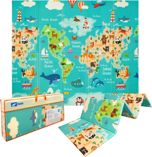 Atklājiet plašu un mīkstu HUMBI rotaļu paklājiņu no kvalitatīvām XPE putām ar izmēriem 200 × 180 × 1 cm. Tas ir divpusējs – viena puse ar krāsainu pasaules karti, otra ar pilsētas ieliņām – un piedāvā drošu, ūdensnecaurlaidīgu un viegli kopjamu virsmu zīdaiņiem un bērniem no dzimšanas. Pateicoties salokāmai konstrukcijai un praktiskajai somai komplektā, tas lieliski der bērnistabai, viesistabai un pat dārzam. Bez kaitīgām vielām, CE, EN71 un REACH sertifikācija vecāku sirdsmieram.
