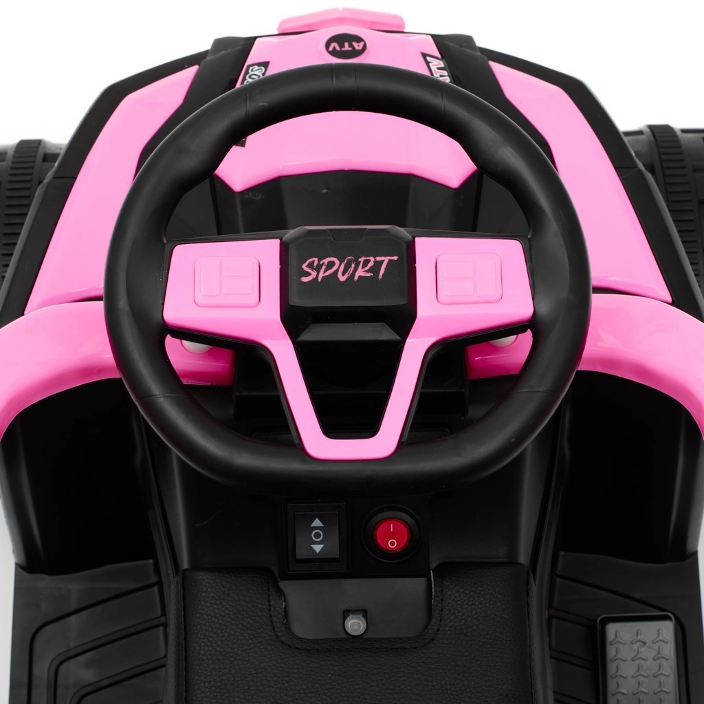 Stilīgs bērnu elektriskais līdzsvara braucamrīks Baby Mix Ruggy krāsā baby pink apvieno 18 W elektrisko piedziņu, stabilu off-road izskatu un drošu vadību ar vadotnes stieni. Ergonomiskais sēdeklis no eko ādas, lielie riteņi un izturīga konstrukcija nodrošina ērtu braukšanu arī uz nelīdzenas virsmas, kamēr vecāki saglabā kontroli, pateicoties augstajam rokturim.