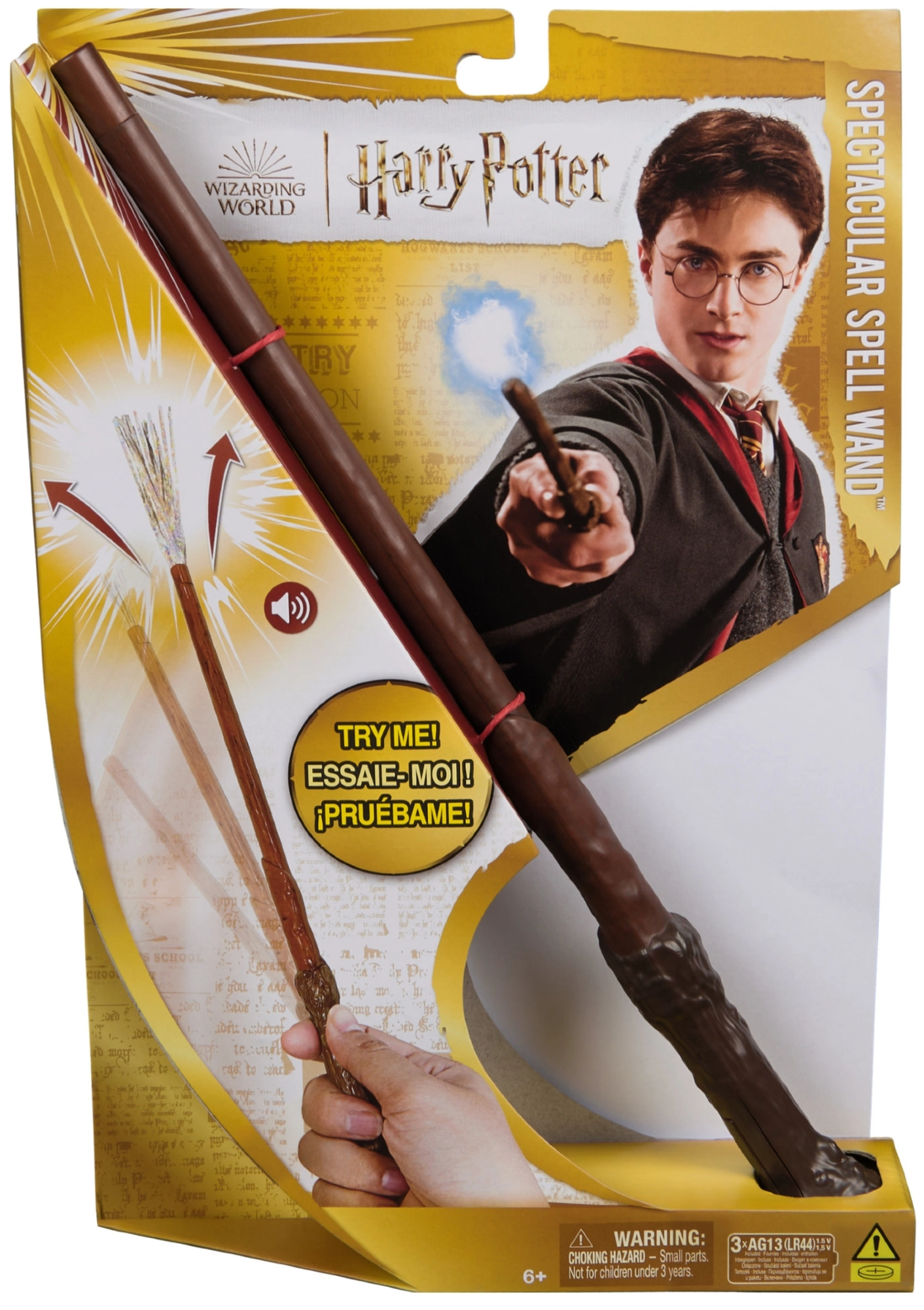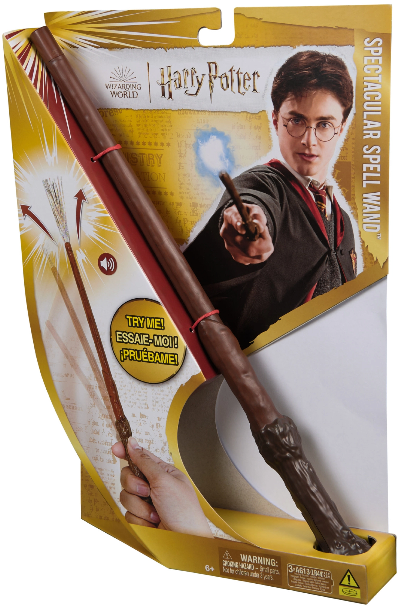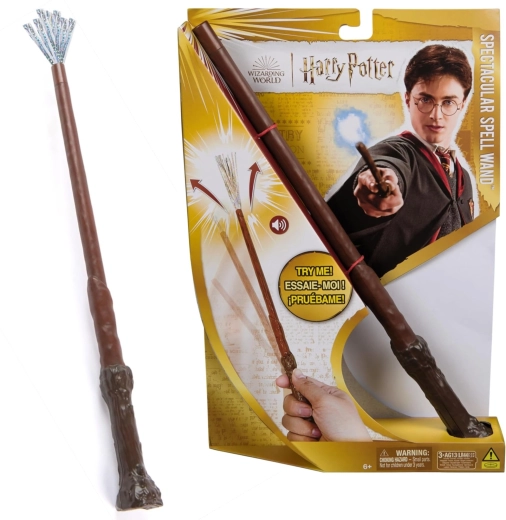 Ļaujieties HARRY POTTER filmu sērijas burvīgajai atmosfērai un izmēģiniet reālistisko Spectacular Spell nūjiņu. Nūjiņa tiek aktivēta ar roku kustību, kas piešķir katrai burvestībai īsto efektu. Pēc burvju izpildes nūjiņas galā parādās sudrabotas strēmelītes, kas imitē maģisku gaismu, un jūs dzirdēsiet īsu skaņu.