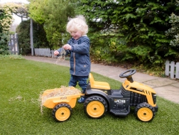 Elektriskais braucamais traktors ar piekabi no zīmola EVO sniedz bērniem daudz aktivitāšu gan dārzā, gan mājās. Pateicoties vienkāršai vadībai un zemam maksimālajam ātrumam, brauciens ir drošs un jautrs. Reālistiskais JCB stila izpildījums un košās krāsas motivē aktīvai spēlei, attīsta līdzsvaru un koordināciju un stiprina kāju muskuļus.