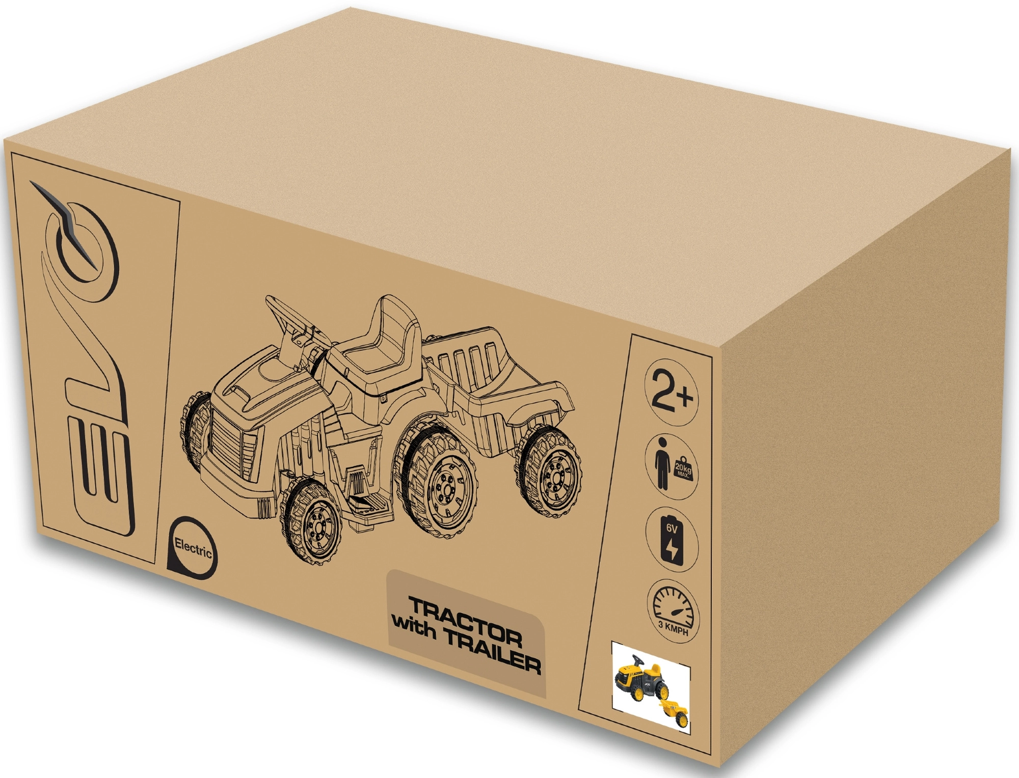 Mazie zemnieki izbaudīs piekabes iekraušanu un rotaļlietu vai nelielu dārgumu pārvadāšanu. Stabila četrriteņu konstrukcija, pretizslīdes kāju atbalsti un izturīgi materiāli nodrošina ērtu braucienu un ilgu kalpošanas laiku. Vadība ir intuitīva – starts ar pogu, braukšana uz priekšu, stūrēšana ar stūri.