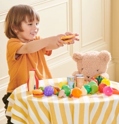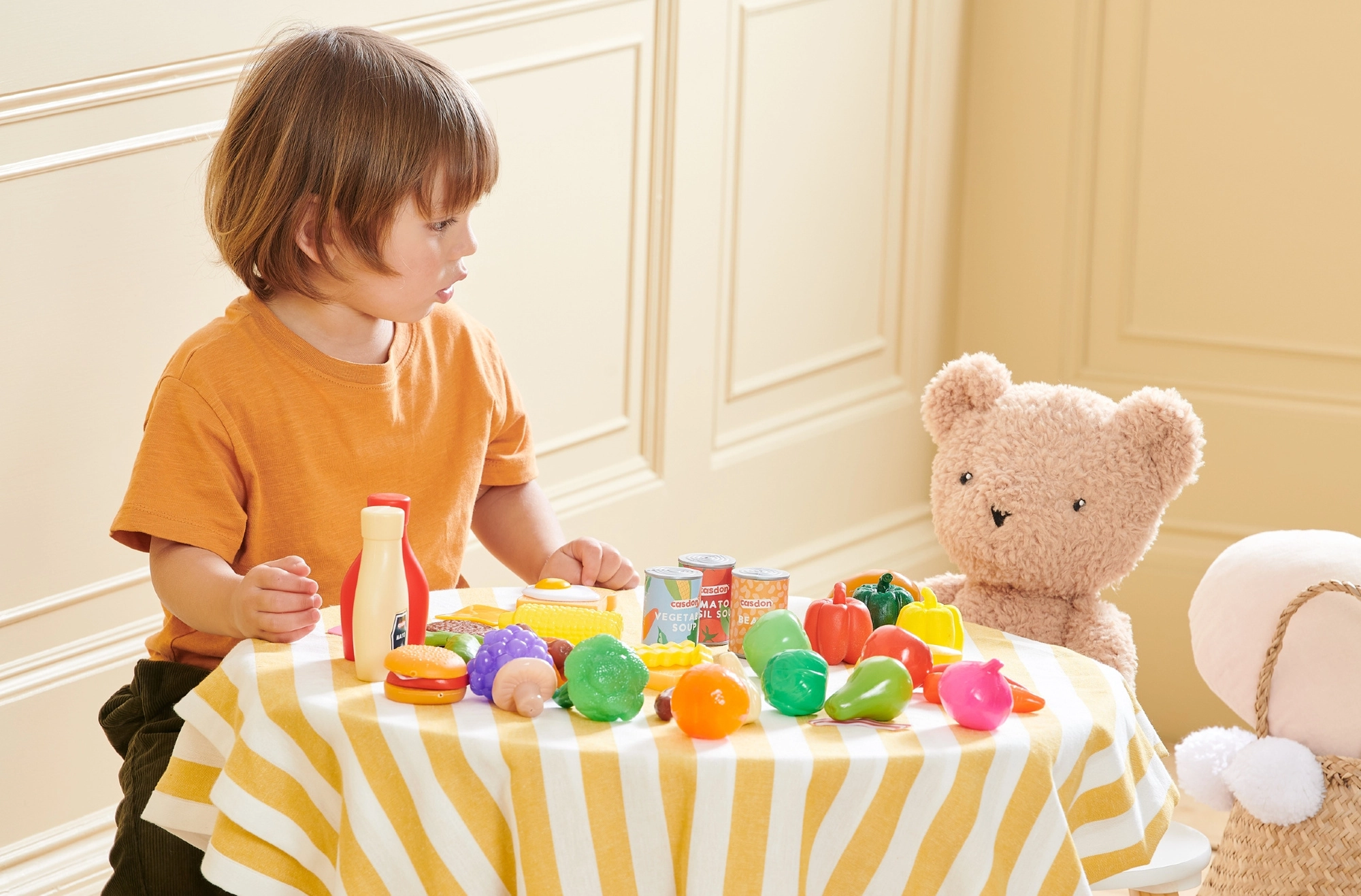 No svaigiem augļiem un dārzeņiem līdz konserviem un iemīļotām našķiem – bērni viegli sagatavos brokastis, pusdienas un vakariņas, kā arī trenēsies iepirkties un servēt.