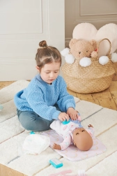 Bērni var trenēt pārtīšanu, ķemmēšanu un lelles kopšanu ar piederumiem, kas izskatās kā īsti – ideāli empātijas un lomu spēlēm.