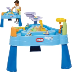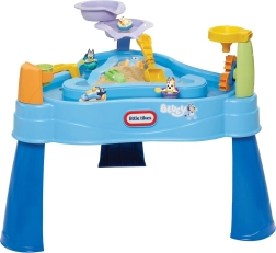 Atklājiet jautro ūdens un smilšu galdu LITTLE TIKES ar BLUEY motīvu, kas veicina sajūtu spēli, sīko motoriku un radošu izzināšanu. Pateicoties gudram 2 vienā risinājumam ar noņemamām kājām, var spēlēties gan pie galda, gan uz grīdas. Bērnus iepriecinās lēna upe, iekšējā smilšu kamera, kaskādes baseini, lejamais spainis un piltuve ar riteņiem, kamēr peldošās Bluey, Bandit, Chili un Bingo figūriņas iedvesmos stāstspēli.