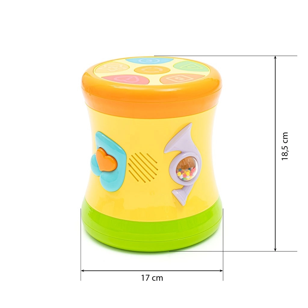 Noapaļotas malas, robusta konstrukcija un kvalitatīva plastmasa nodrošina drošu lietošanu. Ideāli piemērots grūstīšanai, kratīšanai un bungāšanai ar mazajām rociņām.