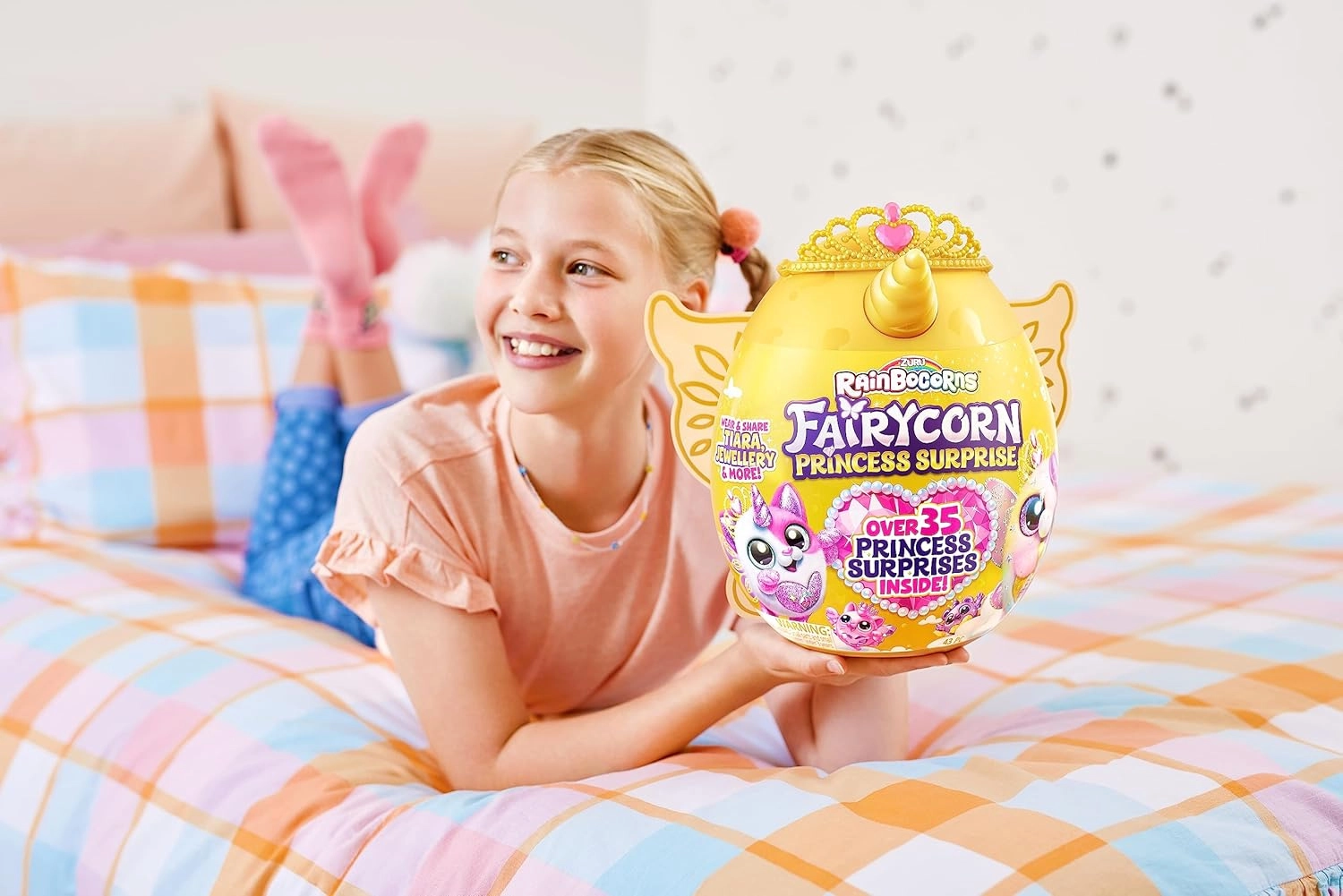 Ar Fairycorn Princess Surprise katras zelta olas atvēršana kļūst par pasakainu mirkli. Iekšā jūs gaida plīša princeses vienradzis ar mirdzošām detaļām, sirsniņu un kaudzi aksesuāru, kas veicina radošu spēli un kopīgas emocijas. Katra paka piedāvā citu tēliņu un aksesuāru kombināciju – savāciet tos visus!
