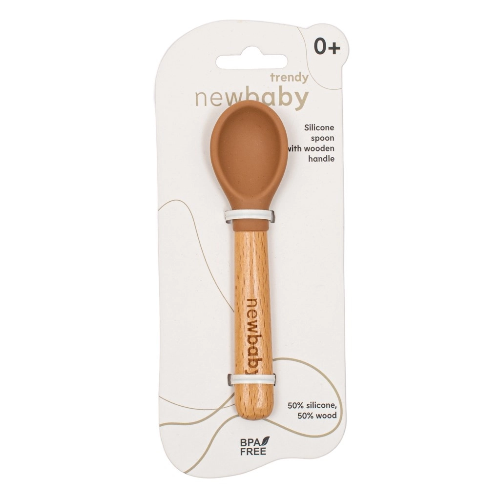 Praktiska un stilīga bērnu karotīte NEW BABY apvieno dabīgu koku un mīkstu, BPA nesaturošu silikonu saudzīgai ēdināšanai jau no agrīna vecuma. Ergonomiskais koka rokturis ērti guļ rokā, bet maigā silikona daļa ir saudzīga jutīgām smaganām. Komplektā ir higiēnisks futrālis drošai uzglabāšanai mājās un ceļā.
