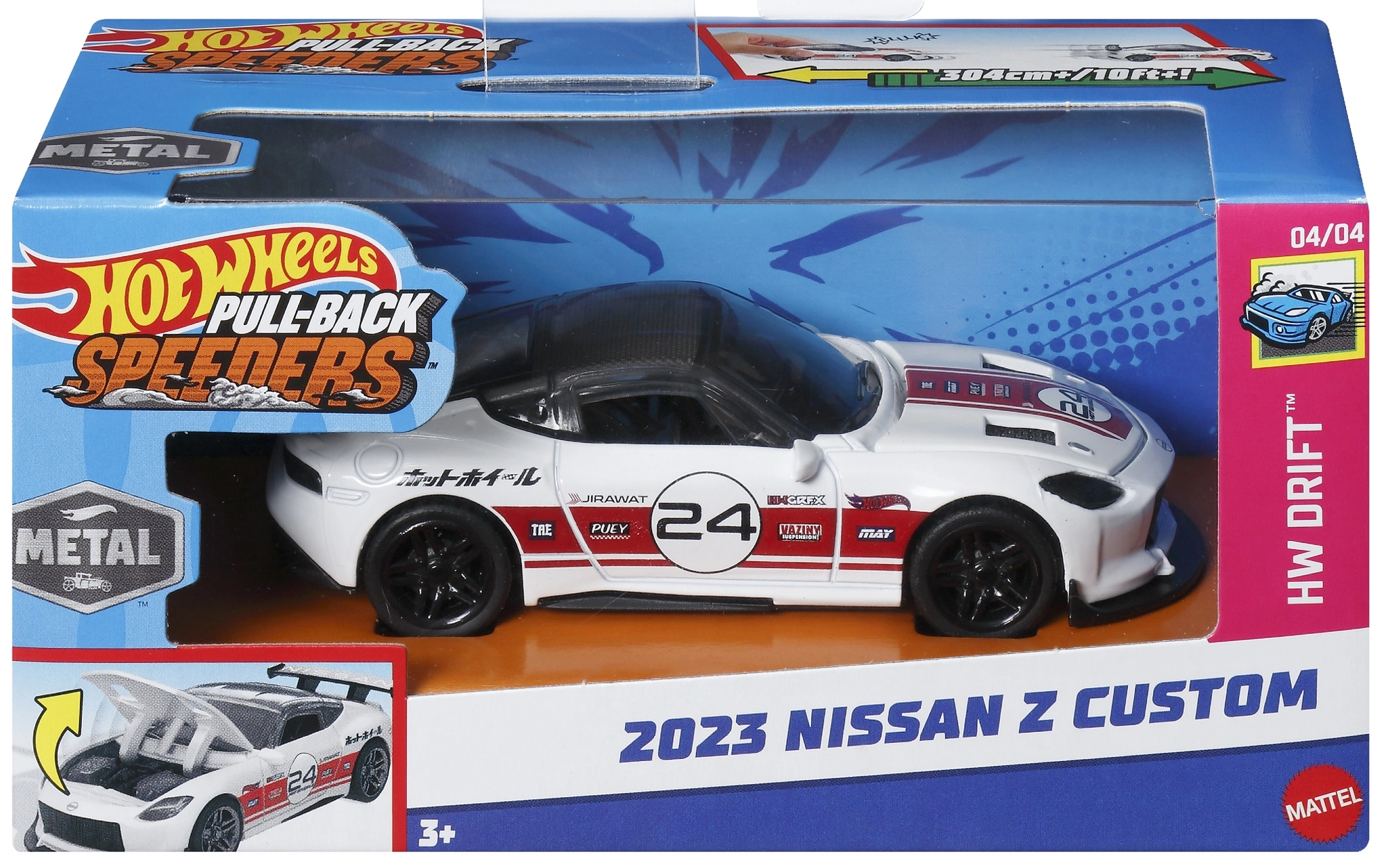 Sagatavojies ātrai un aizraujošai izklaidei ar modeli HOT WHEELS 2023 Nissan Z custom no sērijas Pull‑Back Speeders mērogā 1:43. Pateicoties atvilkšanas mehānismam (pull‑back) pietiek auto atvilkt atpakaļ un atlaist – tas izšausies uz priekšu ātri un dinamiski. Lielāks izmērs, detalizēts balts virsbūves krāsojums un gluda braukšana ar brīvi ritošiem riteņiem iepriecinās gan mazos, gan lielos fanus.