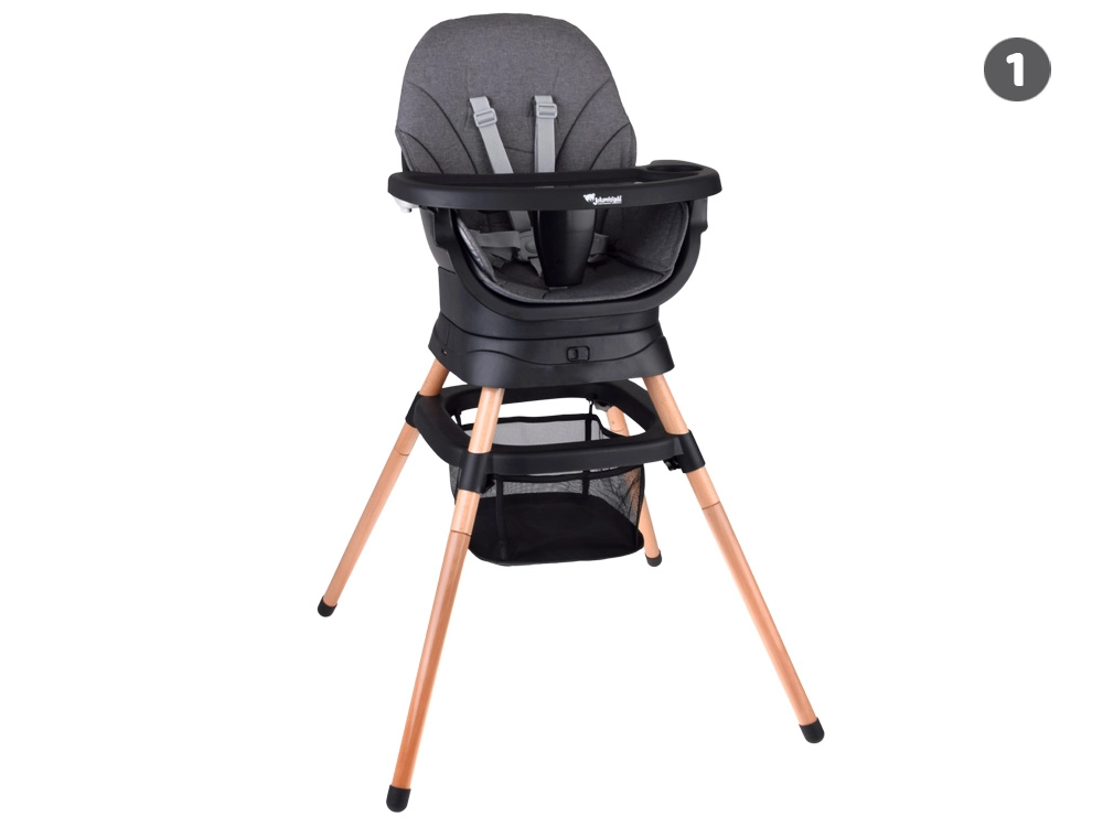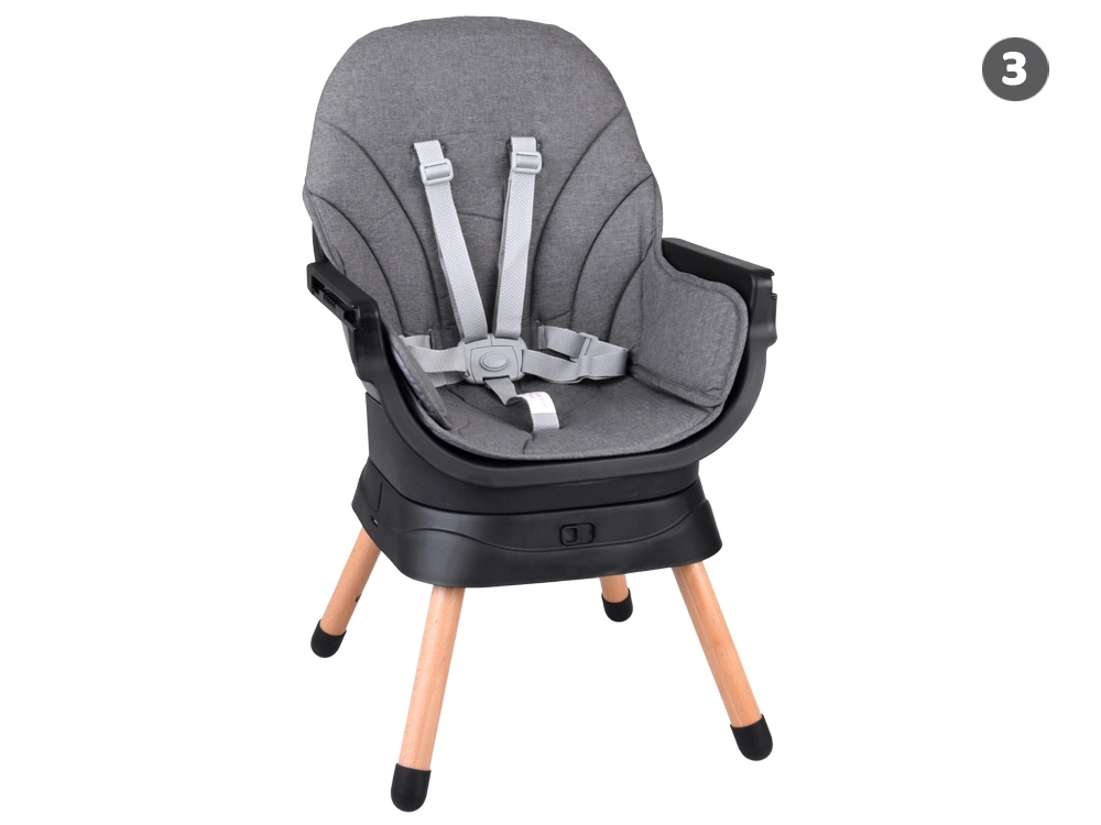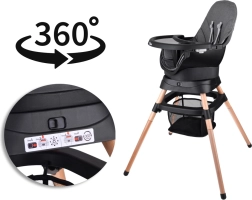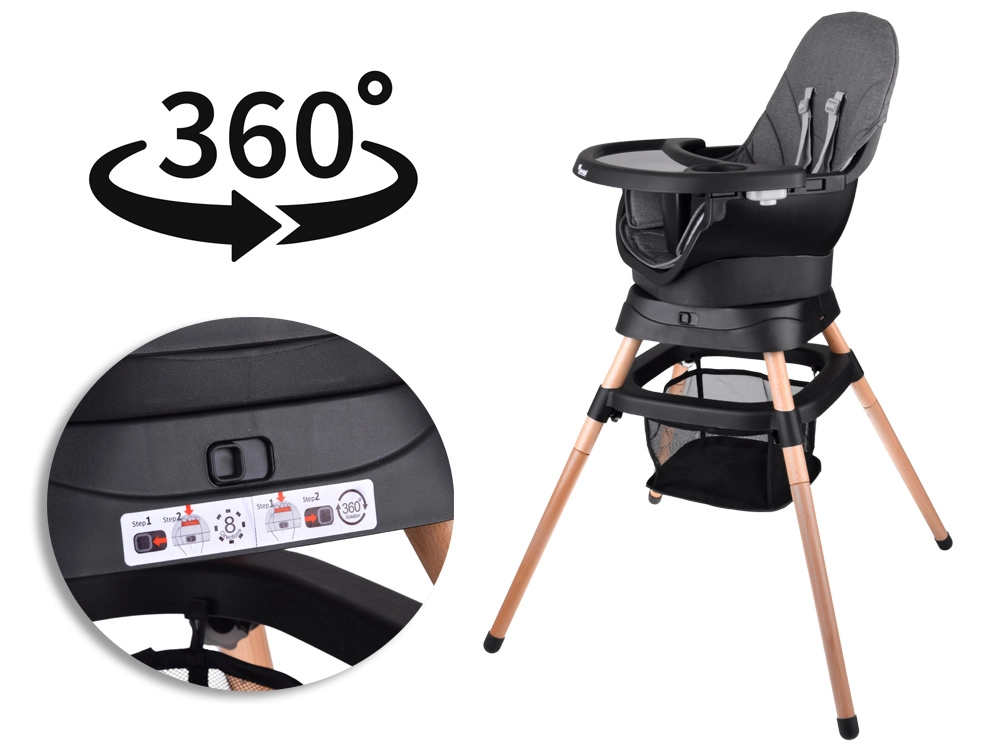 Praktisks bērnu krēsliņš 6 vienā, kas pielāgojas bērna augšanai – no pirmajiem piebarojumiem līdz pat patstāvīgai sēdēšanai un rotaļām. Tam ir 360° grozāms sēdeklis, 5 punktu drošības jostas, regulējams un viegli mazgājams paliktnis, stabila konstrukcija un vienkārša kopšana. Mūsdienīgs, ergonomisks dizains lieliski iederēsies jebkurā interjerā.