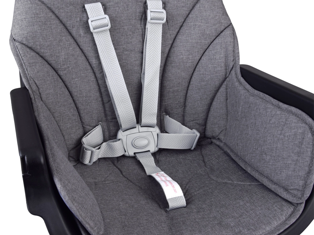 - Drošība pirmajā vietā – 5 punktu jostas, starpkāju atdure un neslīdošas kājiņas maksimālai stabilitātei.