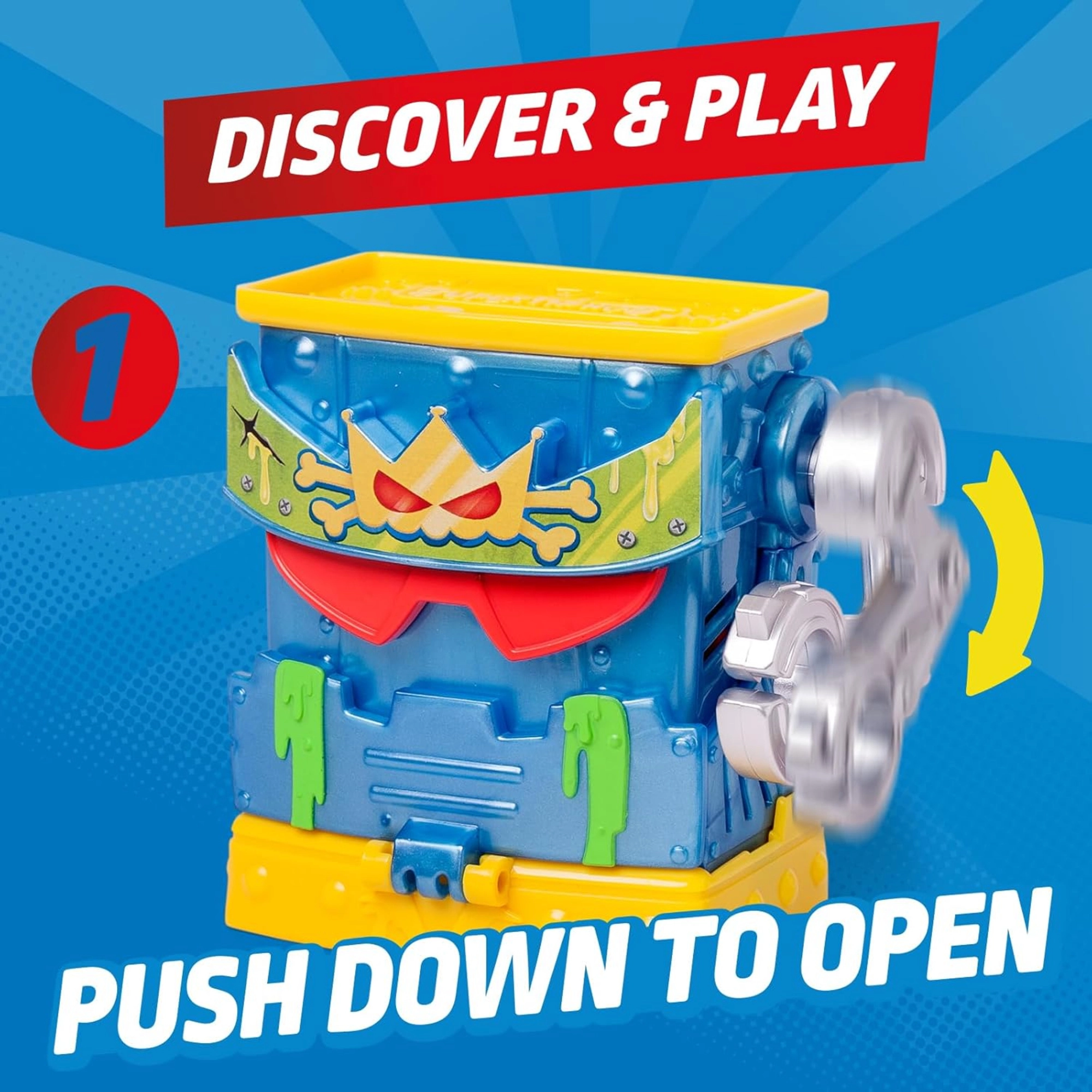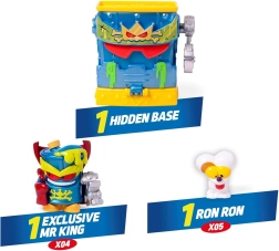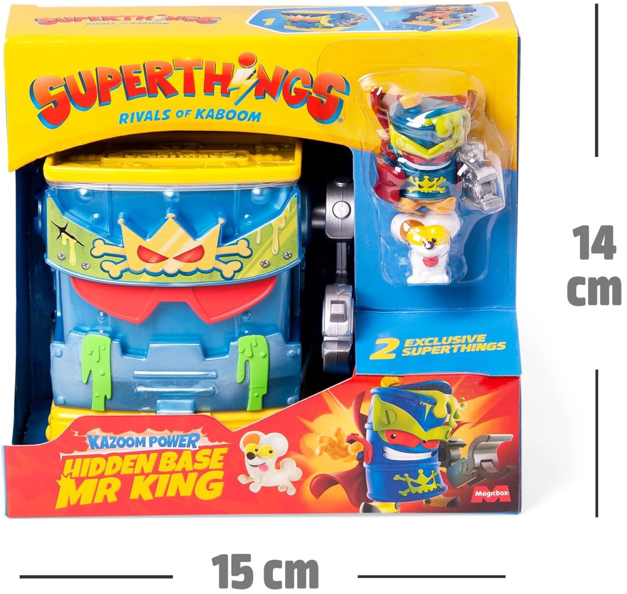 Ienirsti SuperThings pasaulē un atklāj MR KING Slepeno bāzi, ko iedvesmojis seriāls Kazoom Power. Spēļu komplekts piedāvā slēptus pāreju ceļus, loģiskus mehānismus un ekskluzīvas figūriņas Mr King un Ron Ron. Ideāli bērniem, kas mīl interaktīvus piedzīvojumus un mīklas, kas attīsta loģisko domāšanu.