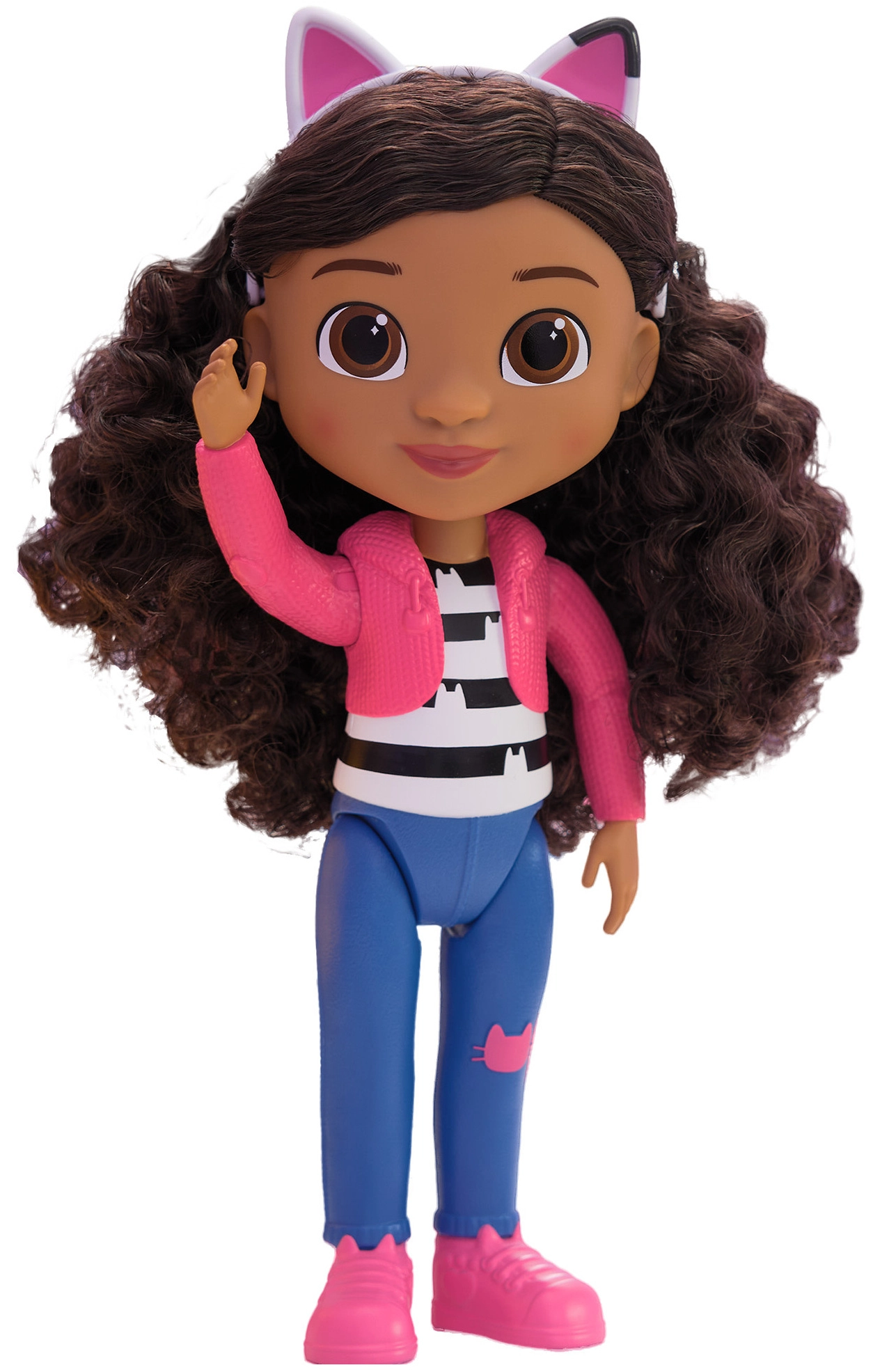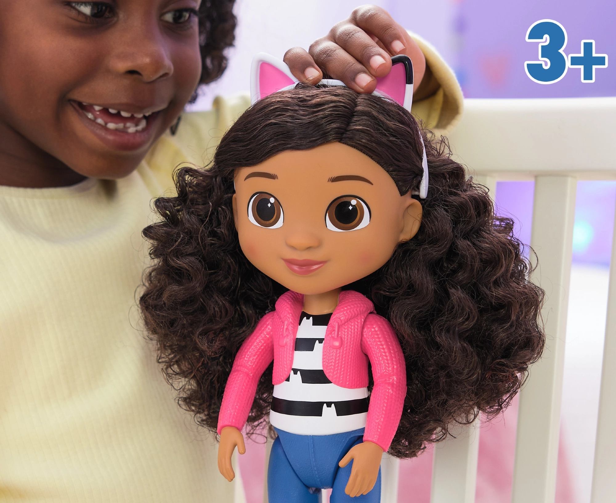 Komplektā ir noņemama stīpiņa ar kaķa austiņām – tieši kā seriālā GABBY'S DOLLHOUSE.