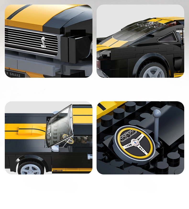 Šis kvalitatīvais CaDA komplekts piedāvā uzticami veidotu SHELBY GT350H modeli elegantā melni‑zeltā salikumā. Pēc salikšanas auto ir aptuveni 21,2 × 9,3 × 6,5 cm, attīsta ātrumu līdz 3,8 km/h un, pateicoties atveramam pārsegam, ļauj ieskatīties detalizētā V8 motorā. Drukātās dekorācijas nodrošina ilgmūžību un premium izskatu bez uzlīmju līmēšanas.