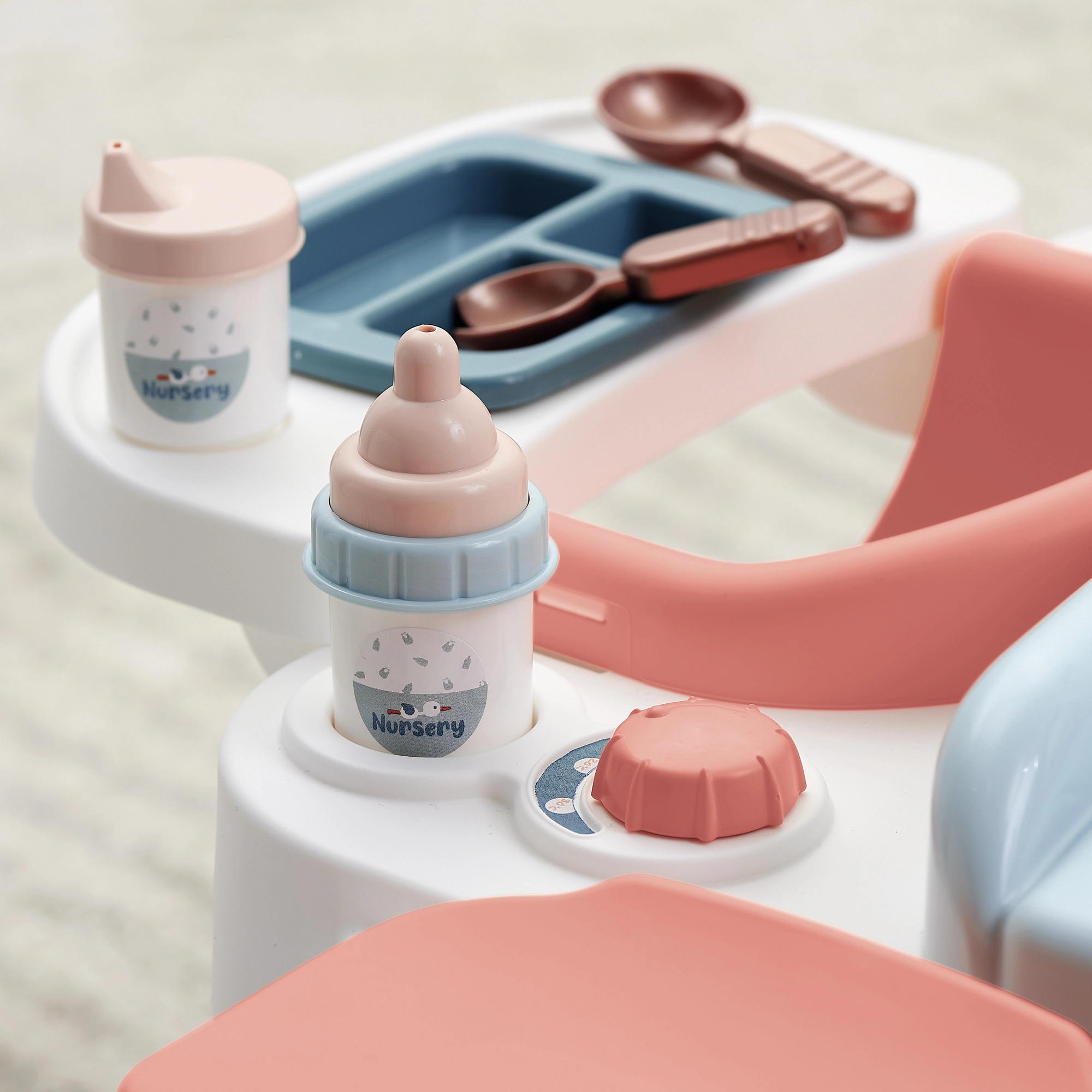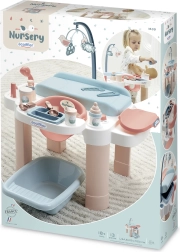 Galdiņš maigos pasteļtoņos ir ideāli piemērots bērnistabai. Vanniņa ar izliešanas snīpi, organizētāji pudelītēm un piederumiem, kā arī nolokāms pārsiešanas virsmas vāks nodrošina pārskatāmību un kārtību. 13 piederumu (pudelītes, karotīte, trauciņi u.c.) padara spēli aizraujošu un reālistisku.