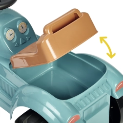 Zem atveramā sēdekļa atrodas ietilpīga slēptuve iemīļotām sīklietām. Bērni atgrūžas ar kājām, tādējādi dabiski stiprinot muskuļus un attīstot koordināciju, kamēr stūre ļauj vienkārši mainīt braukšanas virzienu.