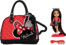Komplektā ir liela rozā soma ar Minnie motīvu, kurā ietilpst lelle un visas sīkas lietiņas. Pateicoties rokturim, bērni to viegli paņems līdzi jebkur. Neiztrūkst arī stends izvietošanai kolekcijā un stilīgi aksesuāri vēl lielākai izklaidei.