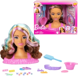 Kļūsti par mazo friziieri ar BARBIE frizēšanas galvu un bagātīgo aksesuāru komplektu. Garie brūnie mati ar pasteļkrāsu šķipsnām aicina veidot bizītes, mezglus un zirgastītes. Komplektā ir skavas un gumijas, suka, stīpiņa un jautri krāsas maiņas efekti sprādzēm un lūpām, izmantojot sūklīti. Ideāli radošai spēlei un sīkās motorikas attīstīšanai.