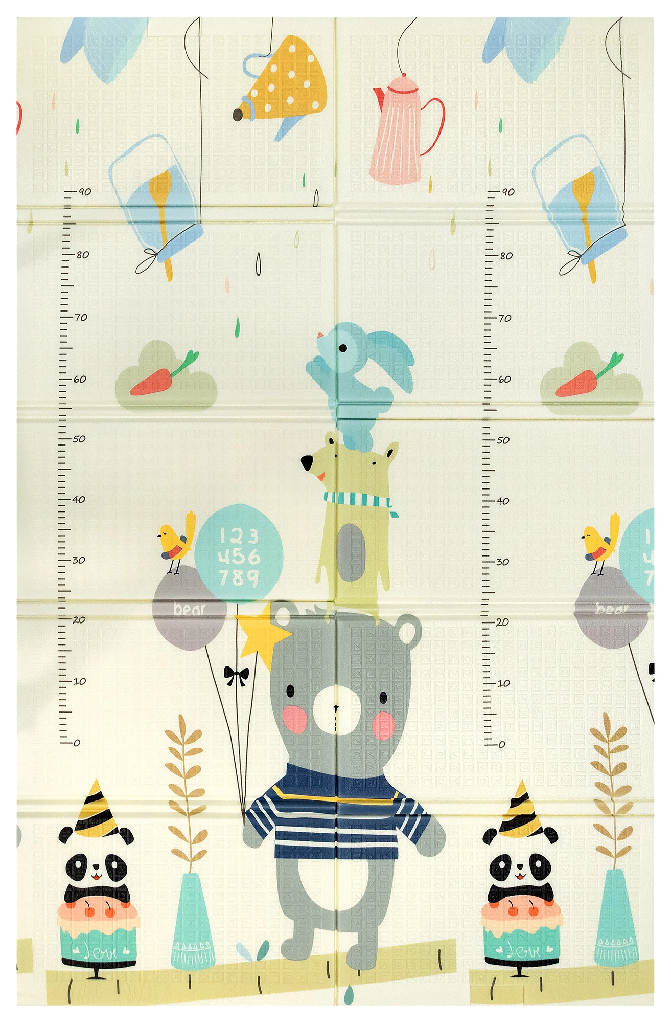 Atklājiet universālu paklājiņu, kas aug līdzi jūsu bērnam no pirmajām dzīves dienām. Pateicoties 1 cm biezumam, tas lieliski izolē no aukstuma un slāpē triecienus, tāpēc ir ideāls drošai spēlēšanai, rāpošanai un pirmajiem soļiem. Divpusējais dizains vienā pusē piedāvā mīlīgas pandas, bet otrā — dzīvnieciņus ar cipariem un auguma mērlenti, kas veicina agrīno attīstību un mācīšanos.
