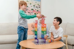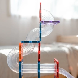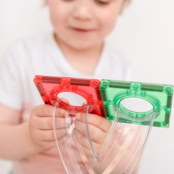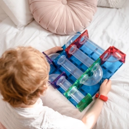 Trašu veidošana trenē smalko motoriku, acu–roku koordināciju un telpisko domāšanu. Ideāli piemērota brīvajai spēlei, grupu projektiem un Montessori aktivitātēm.