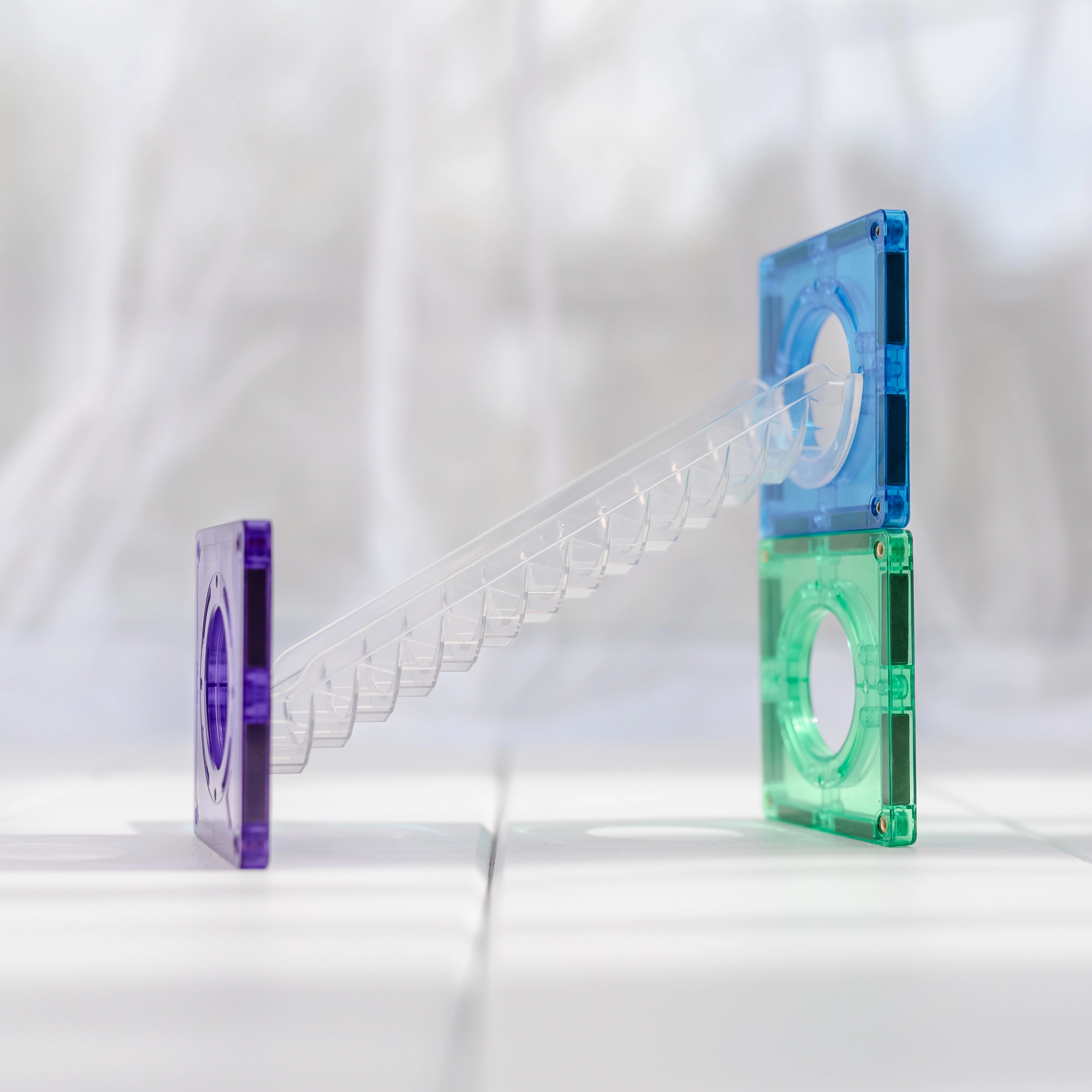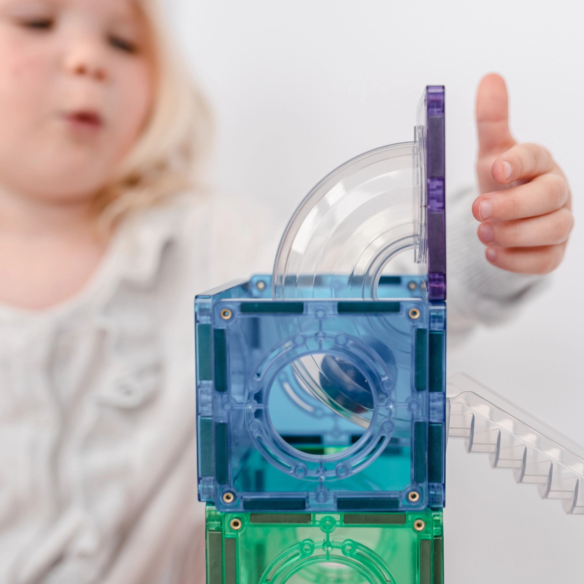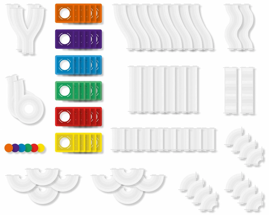 Skaidrās caurulītes, līkumi, S-veida posmi un Y sadalītāji ļauj vērot bumbiņu kustību un pētīt ātrumu, gravitāciju, kā arī cēloni un sekas dažādos salikumos.