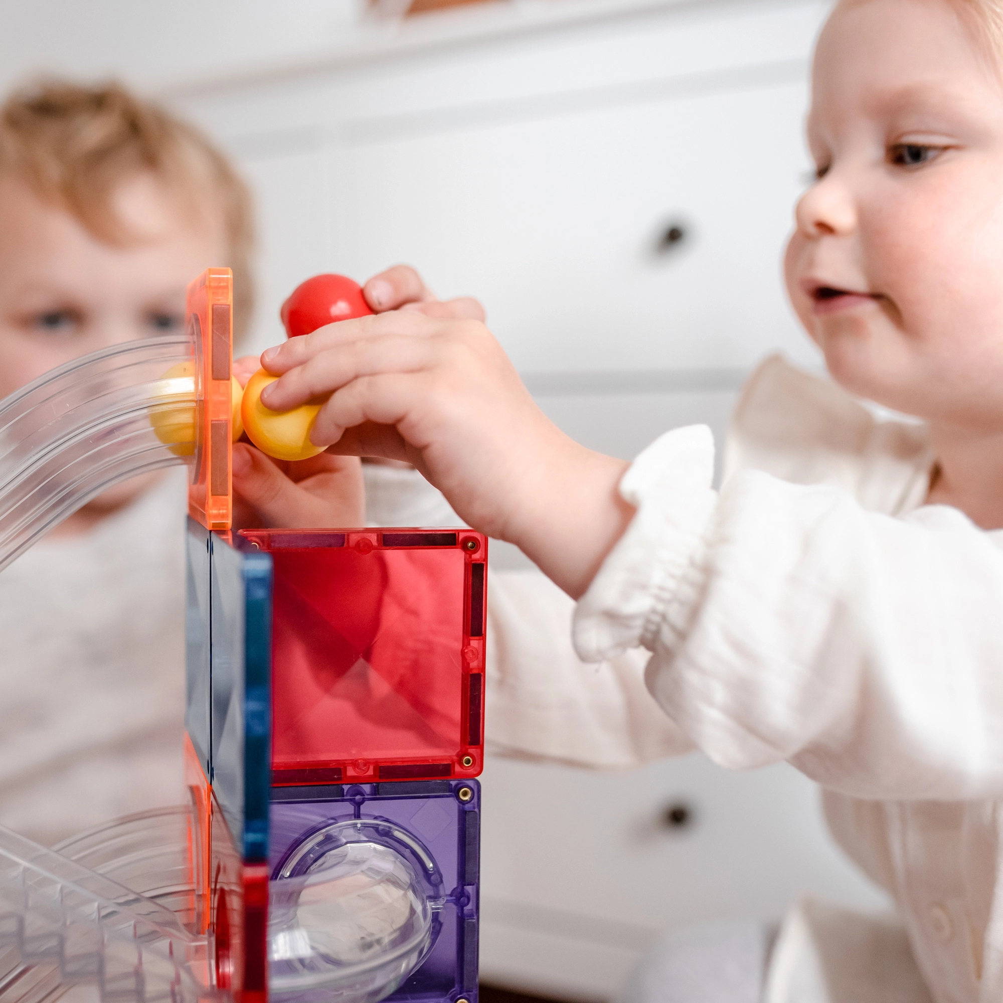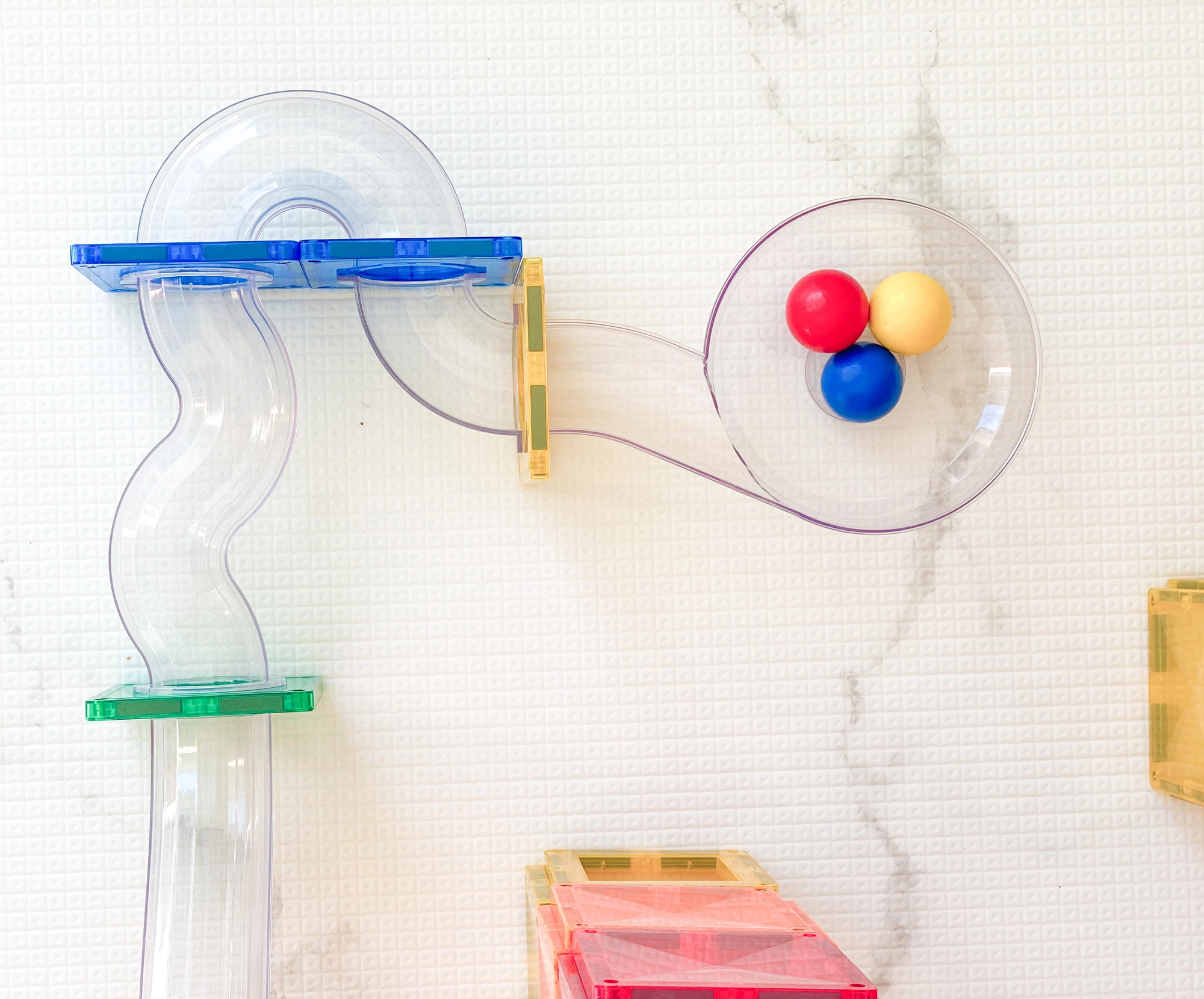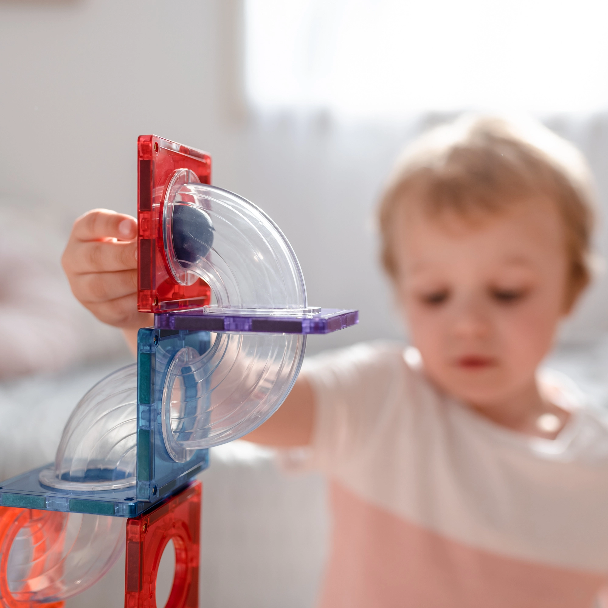 Skaidrās caurulītes, līkumi, S-veida posmi un Y sadalītāji ļauj vērot bumbiņu kustību un pētīt ātrumu, gravitāciju, kā arī cēloni un sekas dažādos salikumos.
