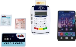 Komplektā ietilpst maksājumu karte, 3 čeki un viedtālrunis ar hologrāfisku ekrānu, kas atbalsta “pīkstināšanas” maksājumu. Tālrunim ir 3 funkcionālas pogas ar dažādām skaņām un lukturītis. Terminālis darbojas ar baterijām (nav iekļautas), tāpēc izklaide var ilgt stundām.