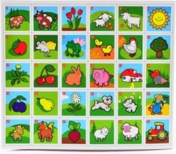 - 32 kartītes ar izmēru 43 × 43 mm