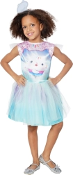 Burvīgs kostīms mazajiem kaķēnu piedzīvojumu cienītājiem piedāvā saldu pasteļtoņu izskatu ar kapkeika motīvu. Vairākslāņu tilla svārki zilgani violetā ombré un maigas volānveida piedurknes veido kuplu efektu, savukārt ērtā piegriezuma dēļ to ir viegli uzvilkt un tas nodrošina brīvas kustības.
