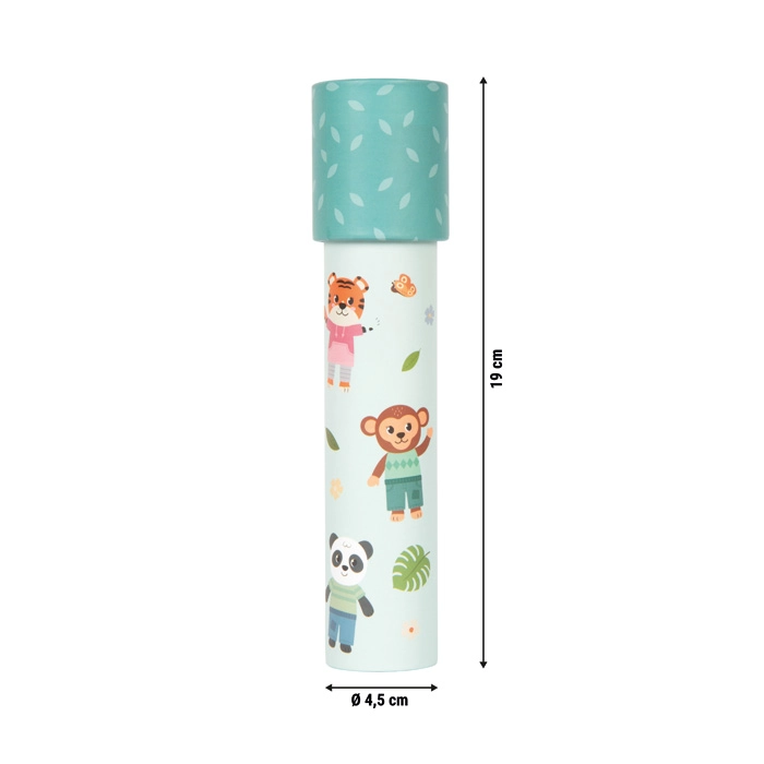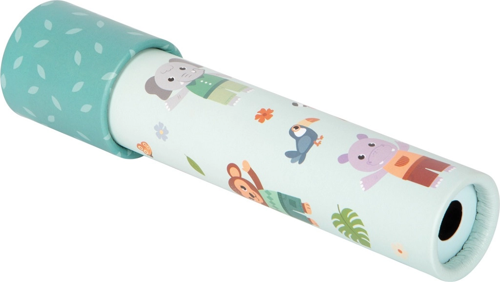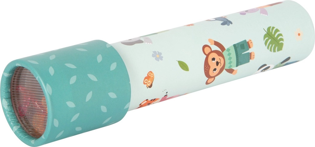 Kaleidoskops Džungles draugi SMALL FOOT iepriecinās bērnus no 3 gadu vecuma ar rotaļīgu dizainu, kurā redzami tīģeris, zilonis, pērtiķis, zebra, panda un nīlzirgs. Ar katru pagriezienu iekšpusē iemirdzas arvien jauni ģeometriski raksti, kas rosina fantāziju un māca bērniem atpazīt krāsas un formas.