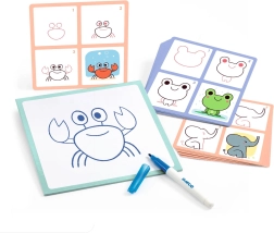 Izklaidējošs radošais komplekts bērniem, ar kuru palīdzību viņi soli pa solim iemācīsies zīmēt mīlīgus dzīvnieku mazuļus. Šabloni vada bērnus katrā vilcienā, dzēšams flomāsters ļauj mēģināt atkal un atkal, attīstot sīko motoriku un radošumu.