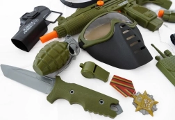 Komplektā ir dažādi armijas stila aksesuāri, kas paplašina spēles iespējas un veicina iztēli.