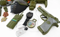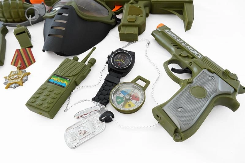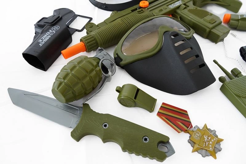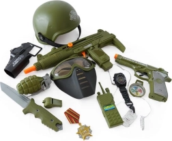 Šis bērnu militārais aprīkojums piedāvā visu nepieciešamo aizraujošām misijām: aizsargķiveri, pistoli un citus piederumus, kas pastiprina spēles pieredzi. Pateicoties reālistiskam izskatam un ērtai lietošanai, komplekts ir lieliska izvēle spēlēm telpās un ārā.