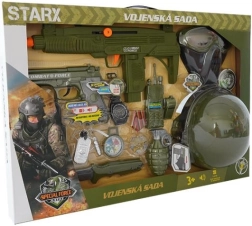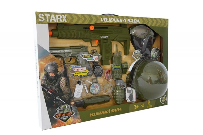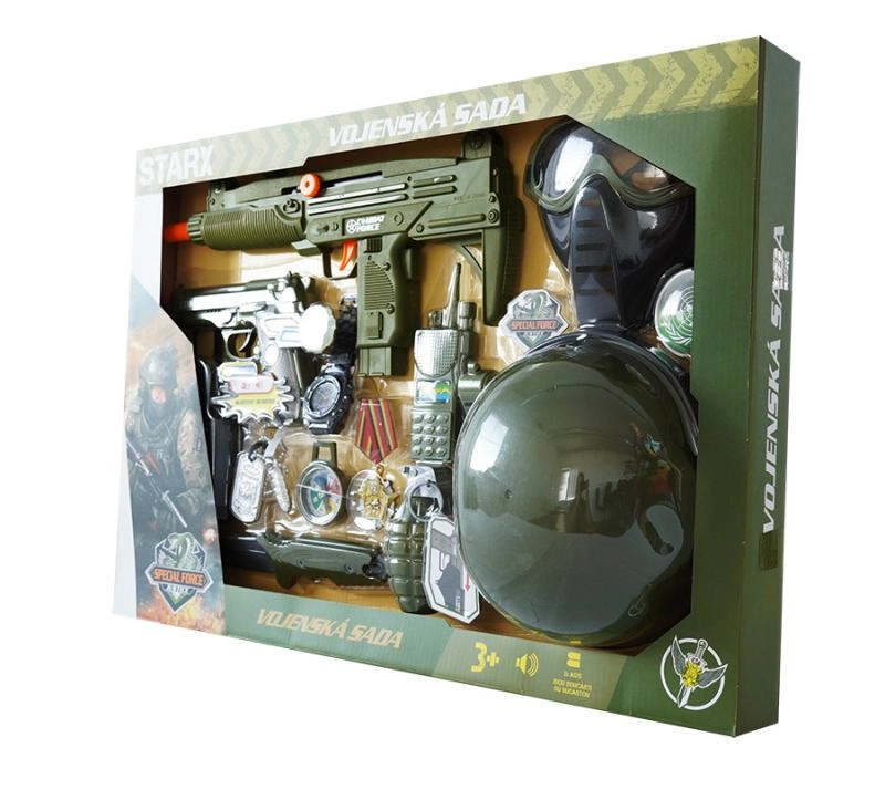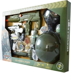 Sniedziet bērniem aizraujošus piedzīvojumus ar pilnu militāro komplektu ar ķiveri, pistoli un bagātīgu piederumu klāstu reālistiskai karavīru spēlei. Komplekts veicina radošumu, lomu spēles un iztēli, un ir ideāli piemērots mazajiem pētniekiem. Pistoles efekti darbojas ar 2× 1,5 V AG13 baterijām (nav iekļautas komplektā).