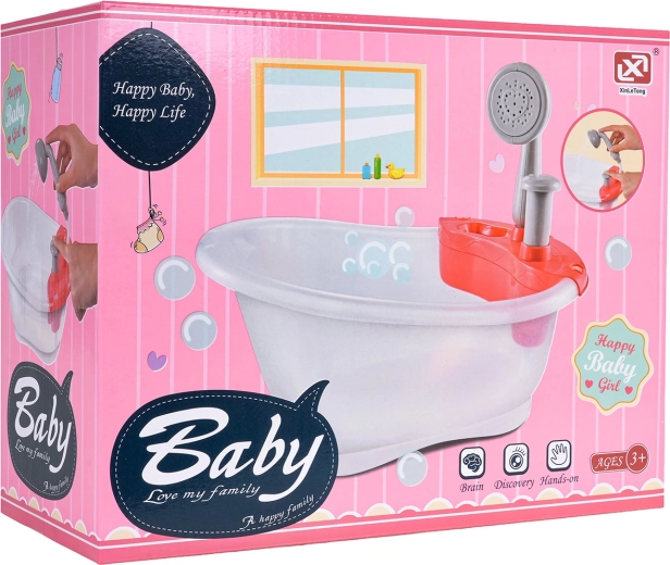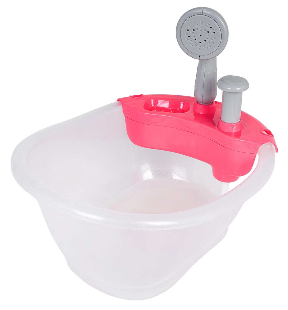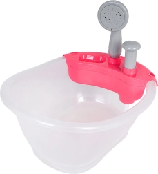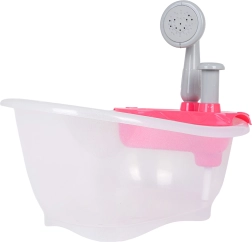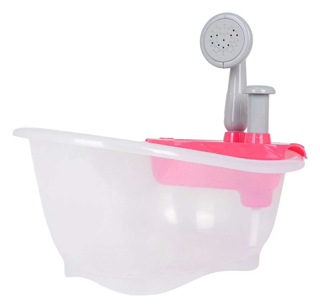 Mīlīga vanniņa lellēm ar dušu iepriecinās bērnus no 3 gadu vecuma. Piepildot ar ūdeni un nospiežot pumpīti, no dušas tiešām tek ūdens. Komplektācija izgatavota no drošiem un kvalitatīviem materiāliem, ideāla kā dāvana mazajām gādīgajām auklītēm.
