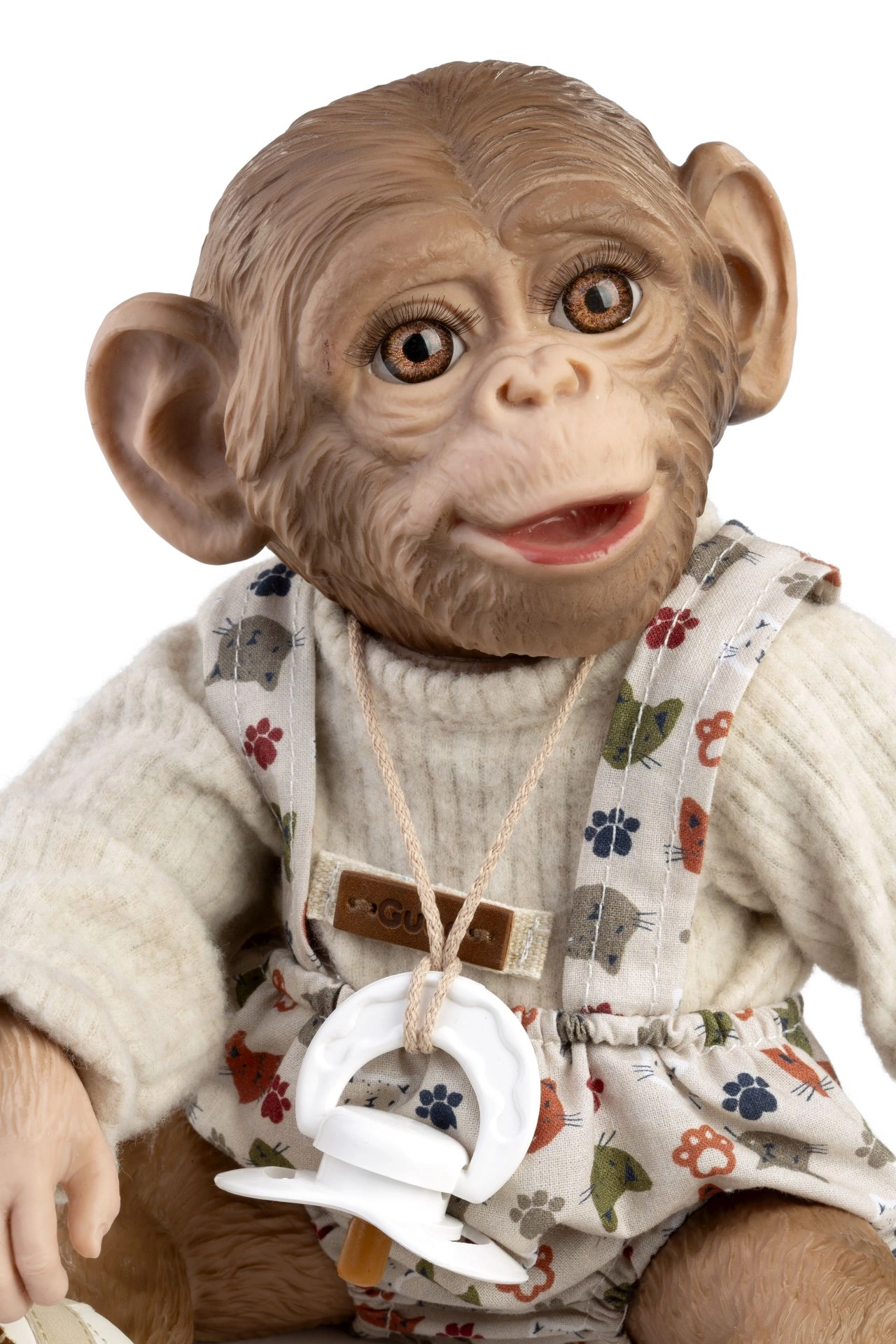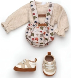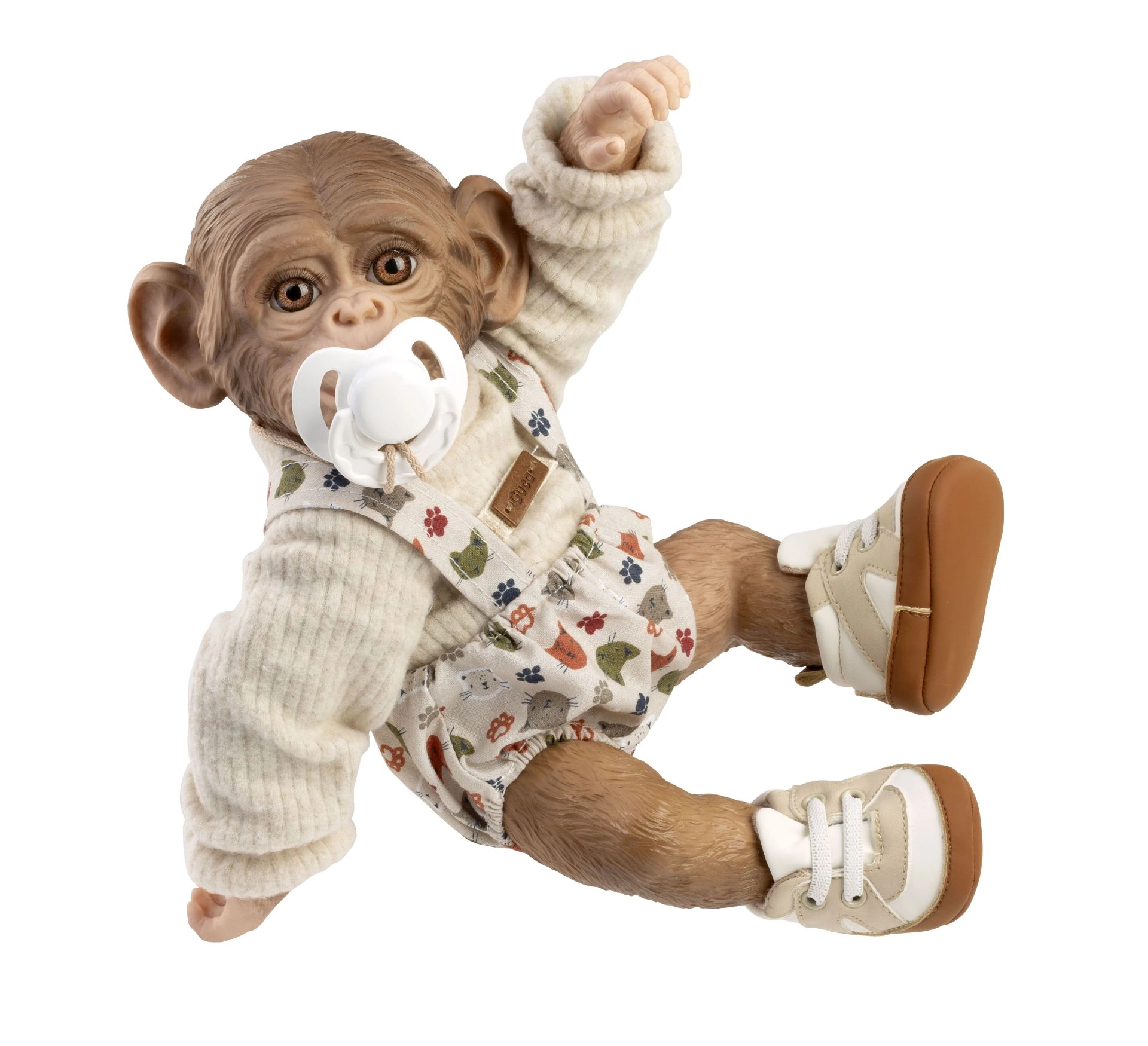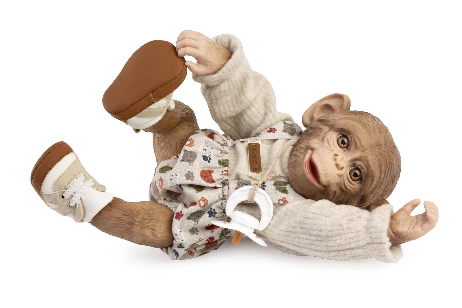 Divi apģērba gabali un kurpītes veido saskaņotu tērpu atdzimušajam pērtiķēnam REBORN 32 cm izmērā – gatavs spēlei uzreiz pēc izpakotnes.